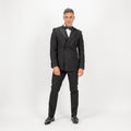 Abito smoking doppiopetto con rever e bottoni effetto seta - Nero
