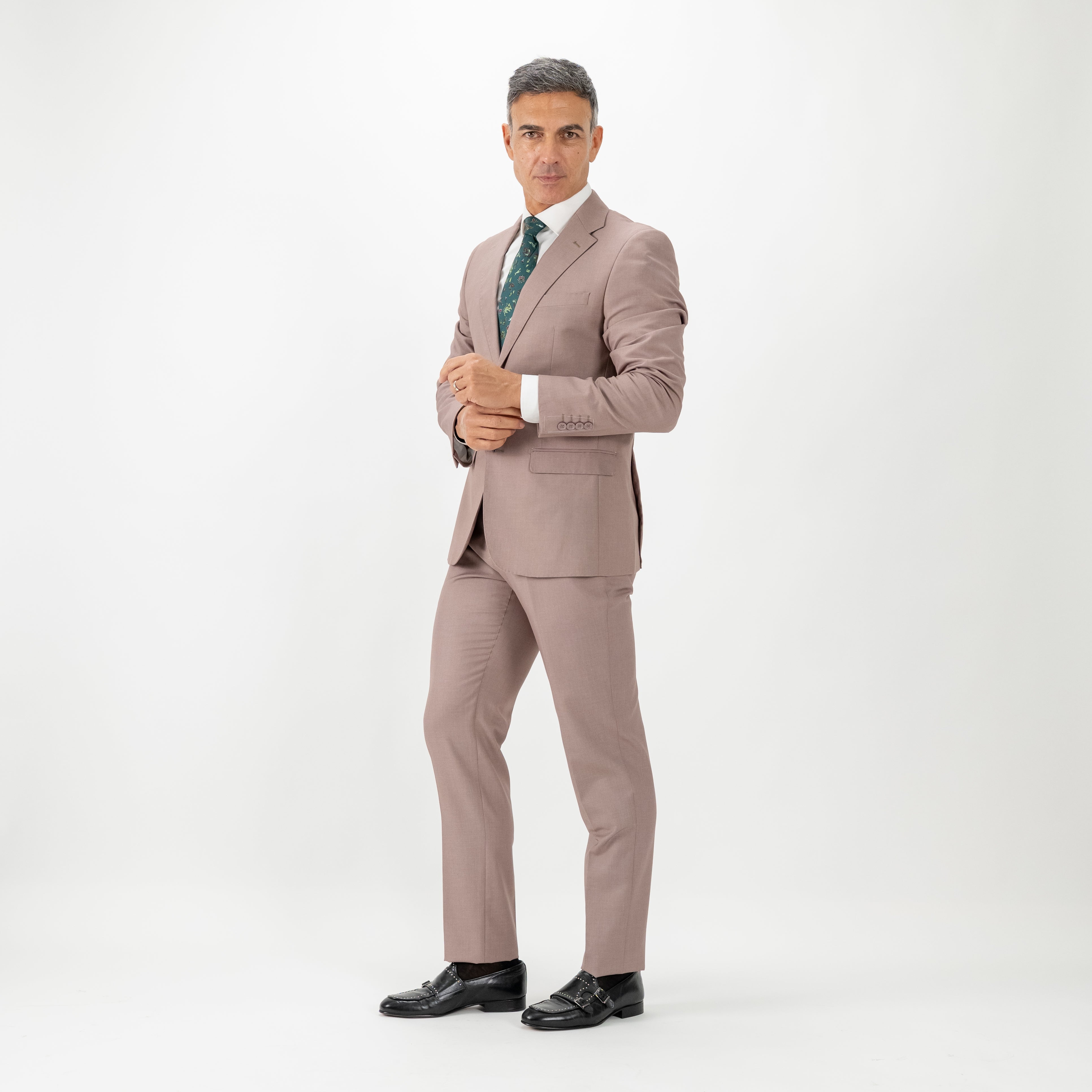 Una rilettura contemporanea dell’eleganza maschile, pensata per l’uomo che non rinuncia al comfort senza compromessi sullo stile. La giacca monopetto, impreziosita da impunture sartoriali a vista, completamente removibili, scolpisce la silhouette con discreta autorevolezza, mentre il pantalone con elastico interno, nascosto alla vista, offre una vestibilità impeccabile con un tocco di innovazione funzionale.