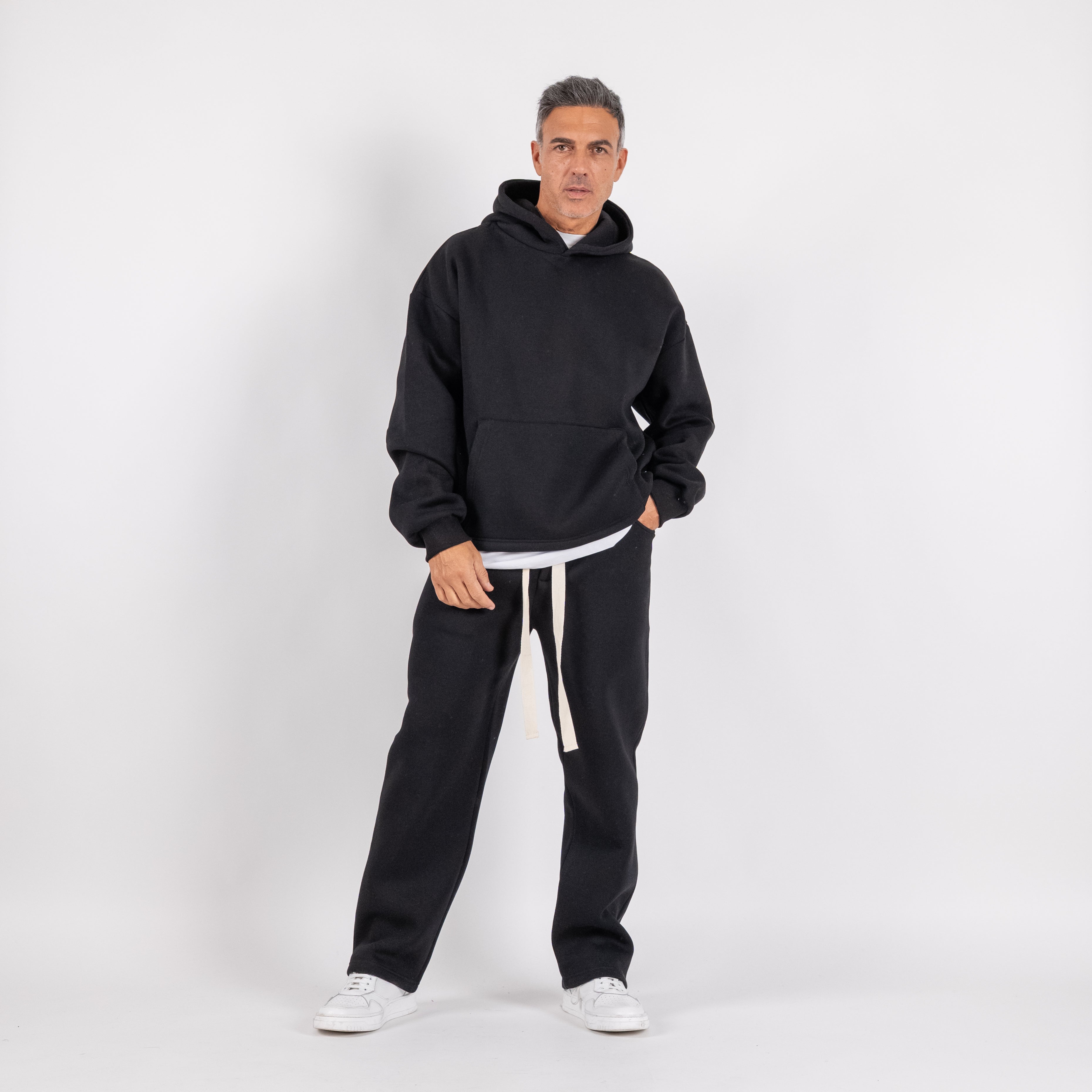 Comoda e stilosa, questa tuta in 100% cotone è il mix perfetto di comfort e design moderno. La felpa oversize con taglio boxy fit offre una vestibilità rilassata e alla moda, ideale per un look casual ma ricercato. I pantaloni palazzo con molla in vita garantiscono una vestibilità confortevole e versatile, perfetti per accompagnarti nelle giornate più dinamiche o nei momenti di relax. Un set essenziale per chi cerca praticità senza rinunciare allo stile.