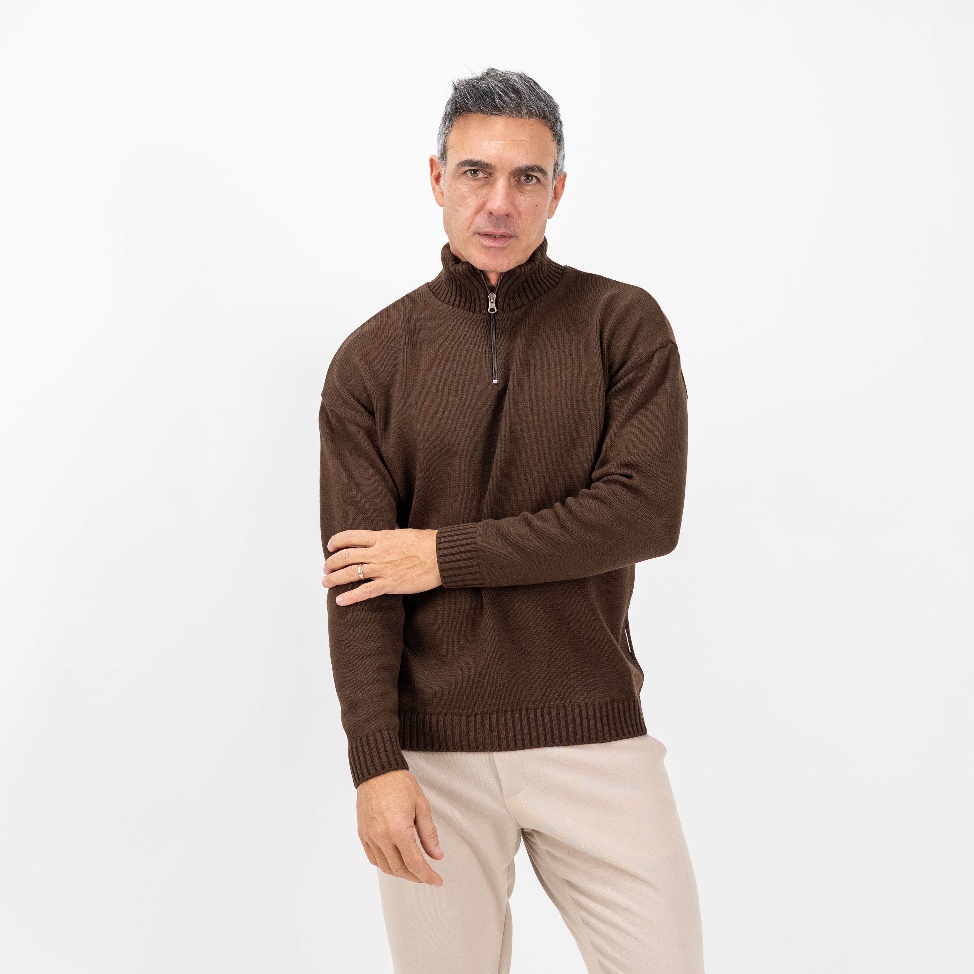 Lupetto con mezza zip in misto lana - Marrone
