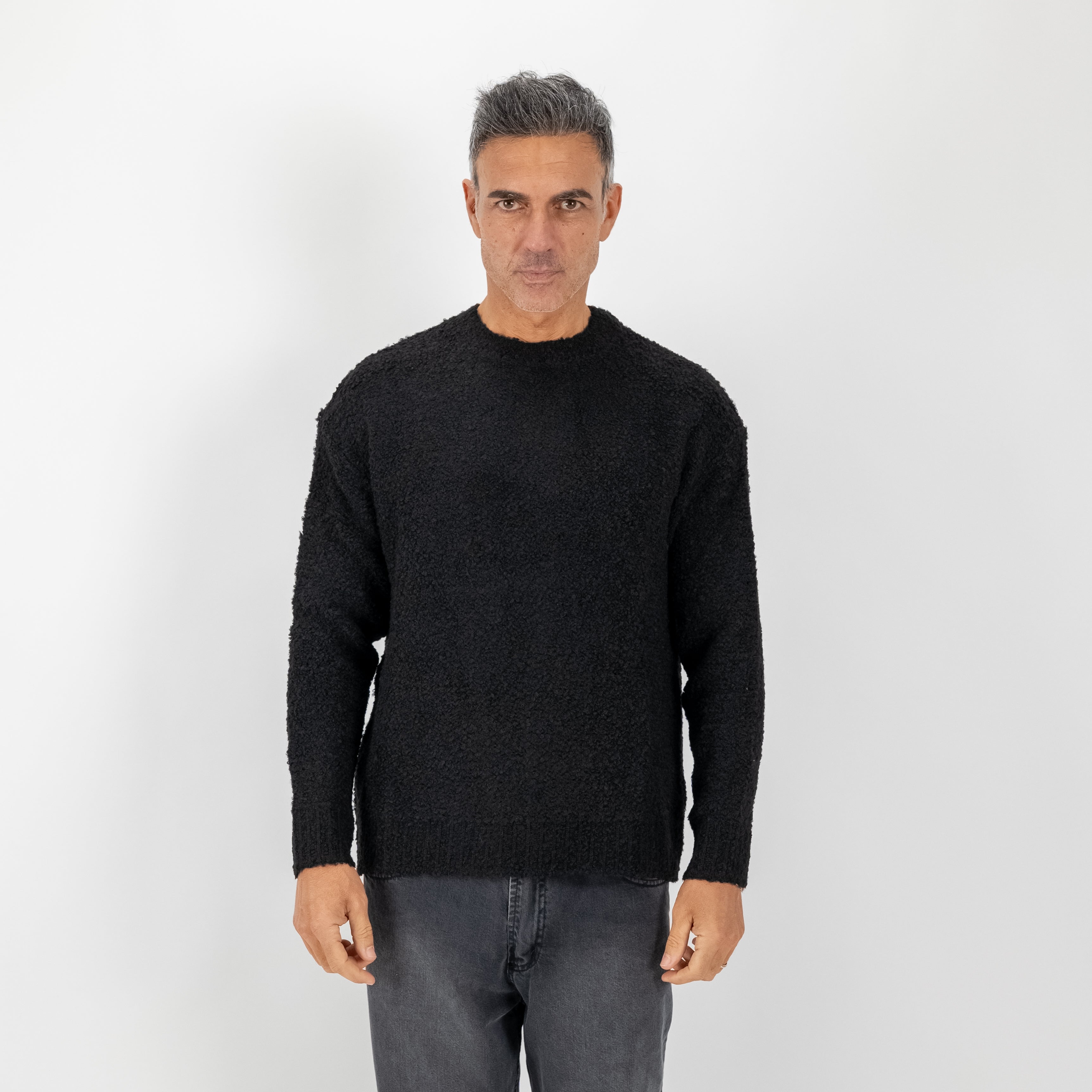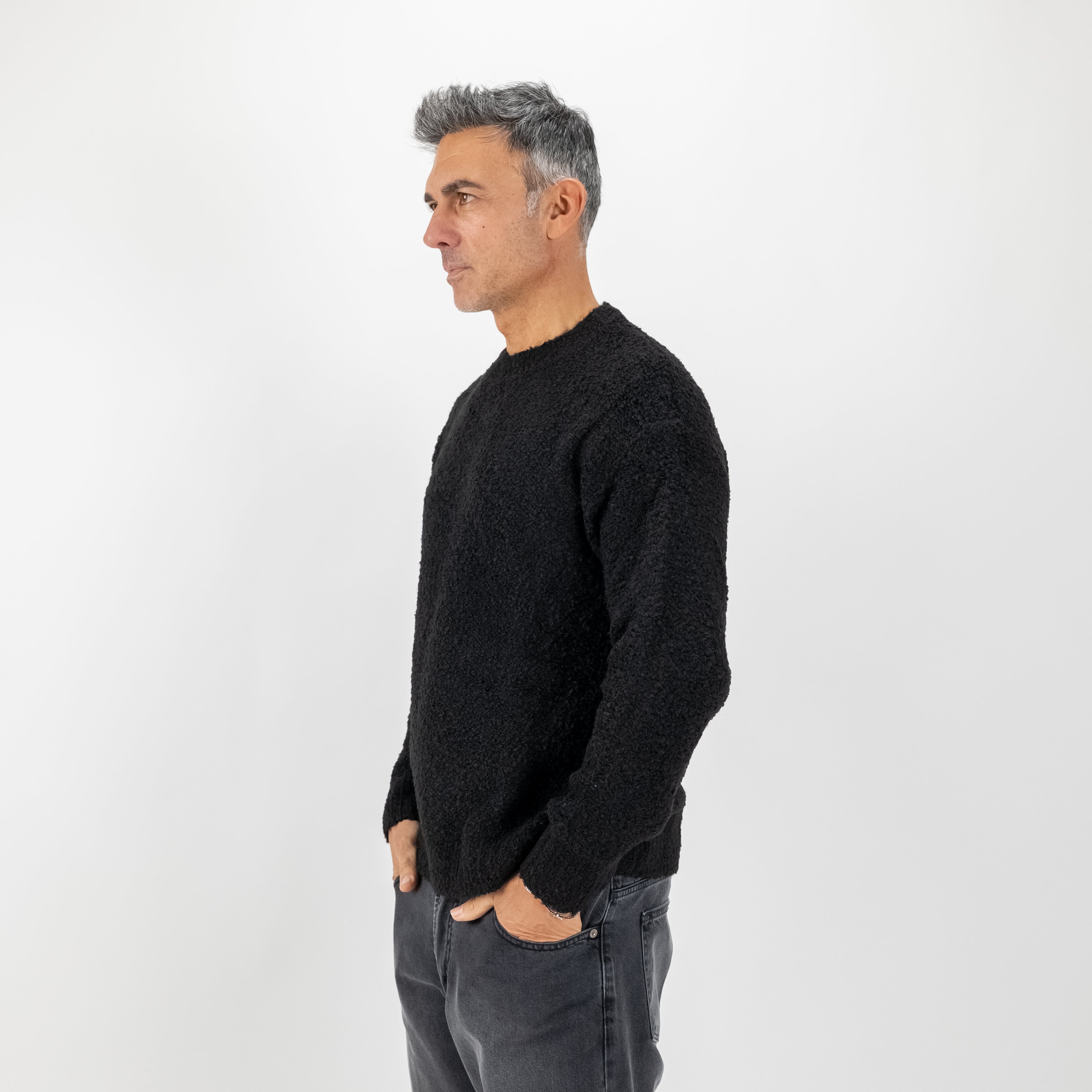 Morbida e calda: questa maglia girocollo Teddy in bouclè è il comfort che non sapevi ti servisse. La trama ricca e leggermente irregolare le dà quell'aspetto rilassato ma comunque super curato, perfetto sia per outfit casual che per look più serio.