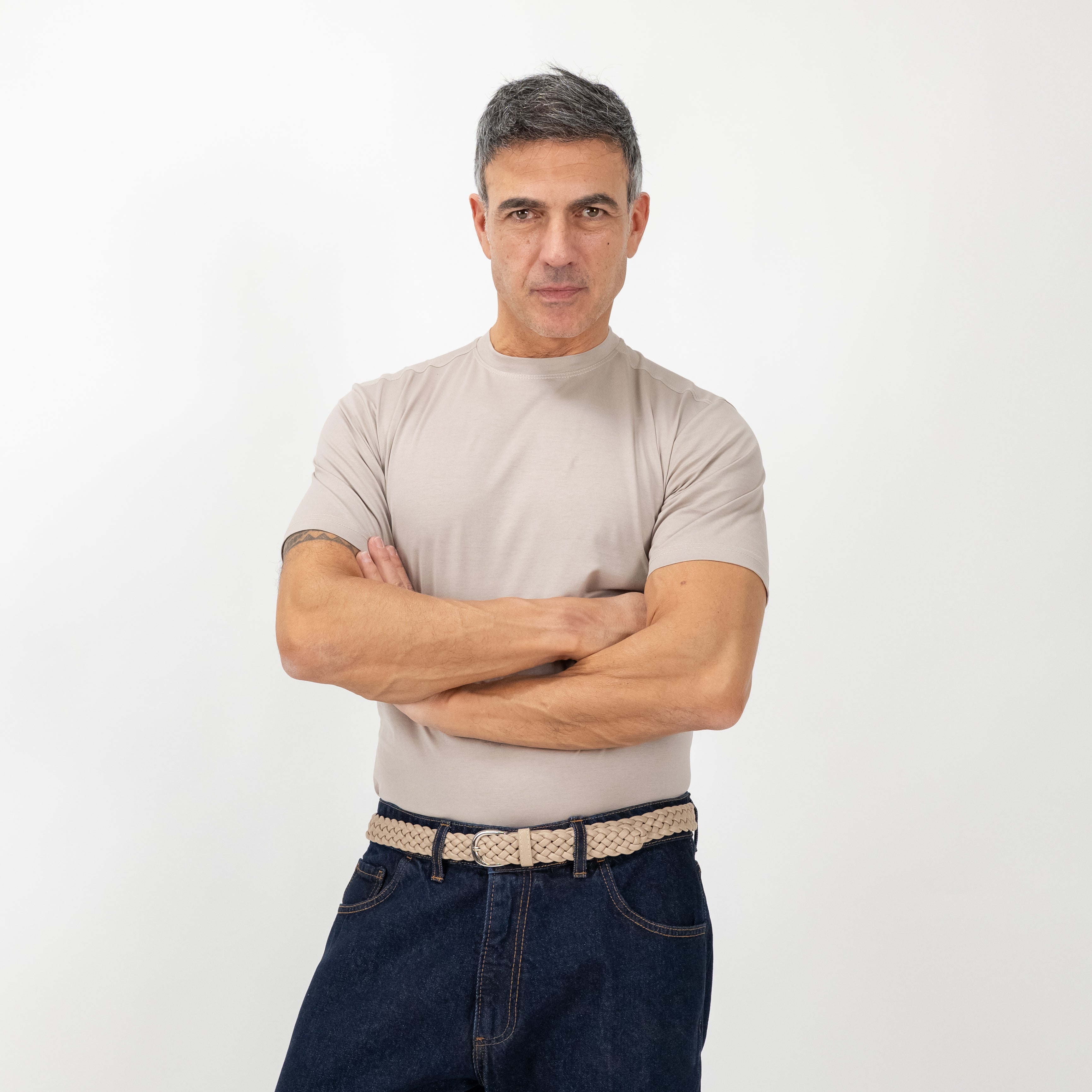 Questa T-shirt in 100% Filo di Scozia effetto seta è pensata per l'uomo che apprezza il lusso discreto e la qualità artigianale. Indossala per sentirti a tuo agio e alla moda, sia durante il tempo libero che nelle occasioni speciali. Eleva il tuo guardaroba con un capo intramontabile che unisce tradizione e innovazione. Scegli il meglio per il tuo stile e il tuo comfort.