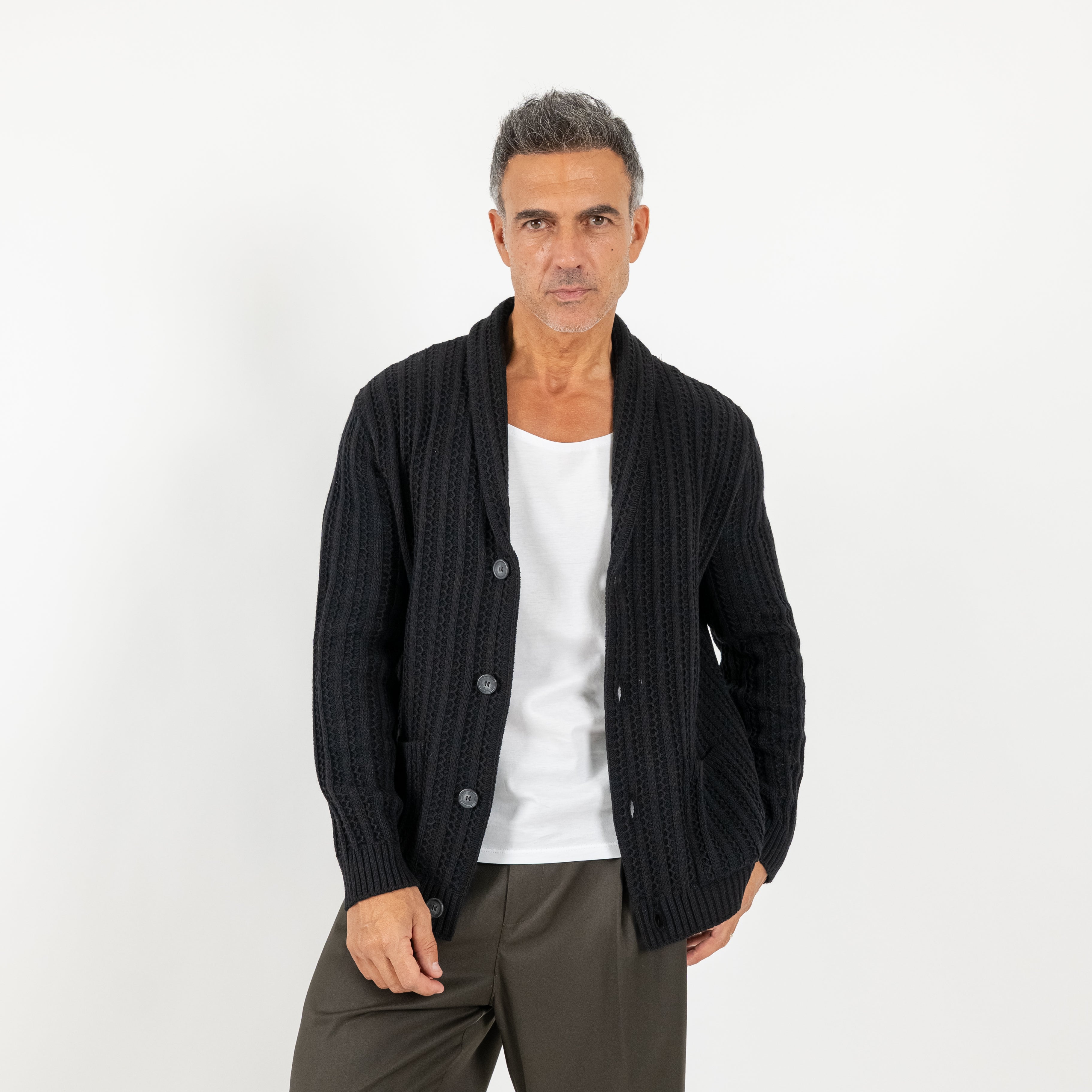 Un equilibrio perfetto tra eleganza sartoriale e comfort contemporaneo: questo cardigan a giacca monopetto è realizzato in morbido tessuto misto lana, che garantisce calore e leggerezza. Il colletto sciallato e il design monopetto conferiscono un’allure raffinata, mentre l’effetto ricamato sul tessuto aggiunge profondità e carattere al capo. Versatile e sofisticato, è ideale da indossare sia sopra una camicia per un look formale, sia su un outfit casual-chic, trasformando ogni combinazione in un dettaglio di stile.