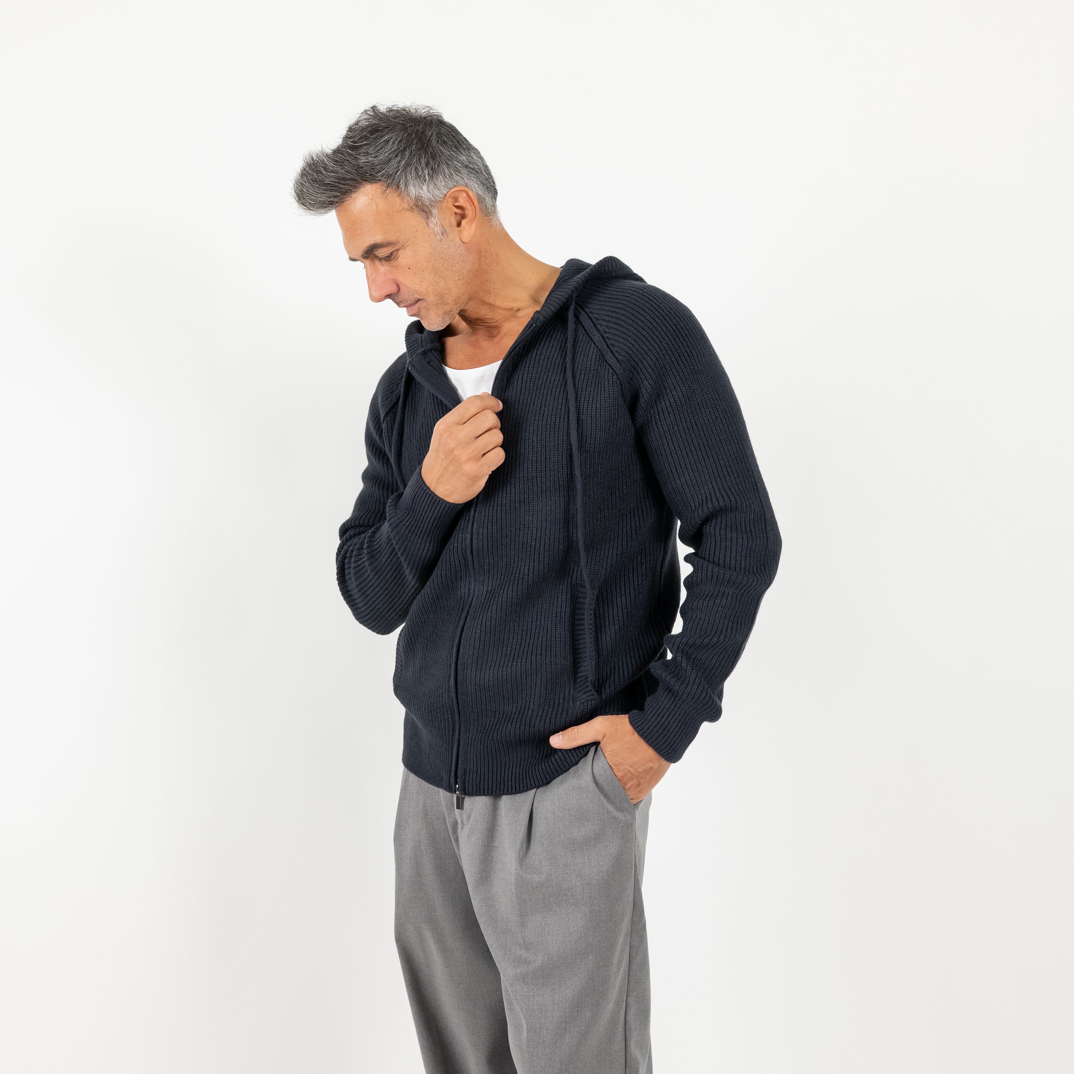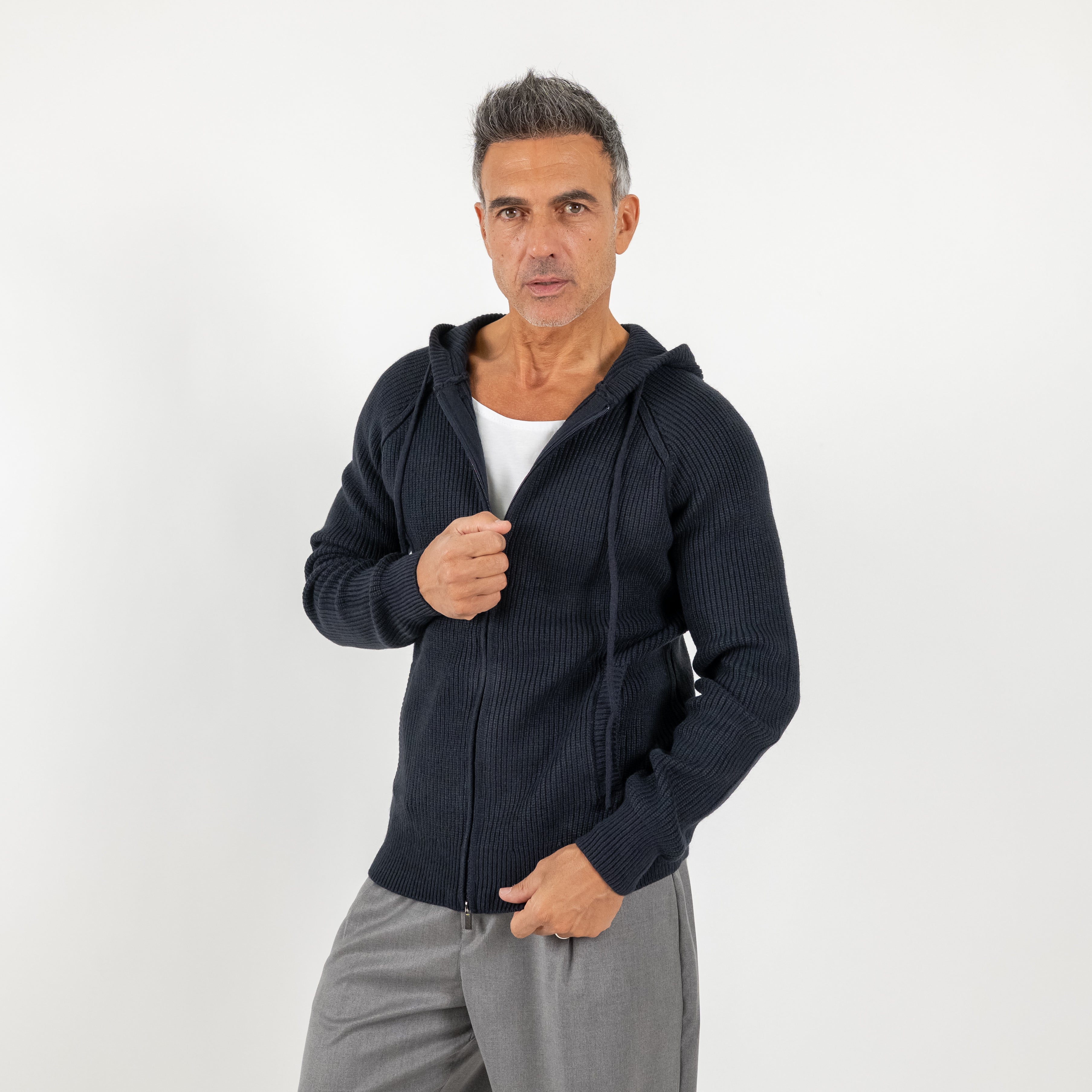Un capo versatile che unisce lo stile casual al comfort di un maglione. Realizzata in morbido tessuto a costine, questa felpa presenta un design avvolgente con cappuccio regolabile tramite lacci. La lavorazione a costine dona un tocco raffinato e contemporaneo, mentre la vestibilità comoda la rende perfetta sia per i momenti di relax che per un look streetwear ricercato.