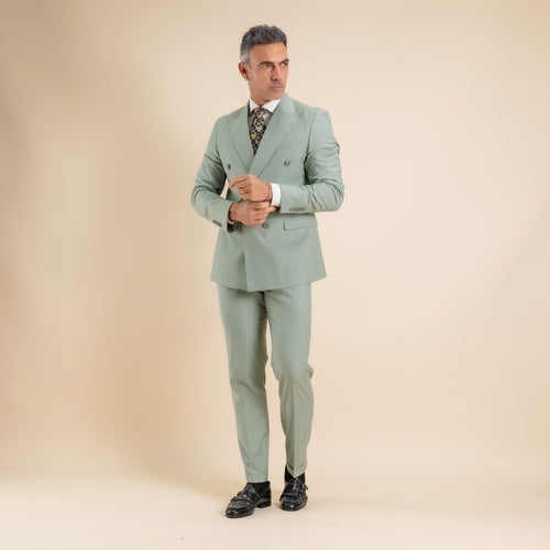 Traje cruzado con solapas de pico pespunteadas - Verde