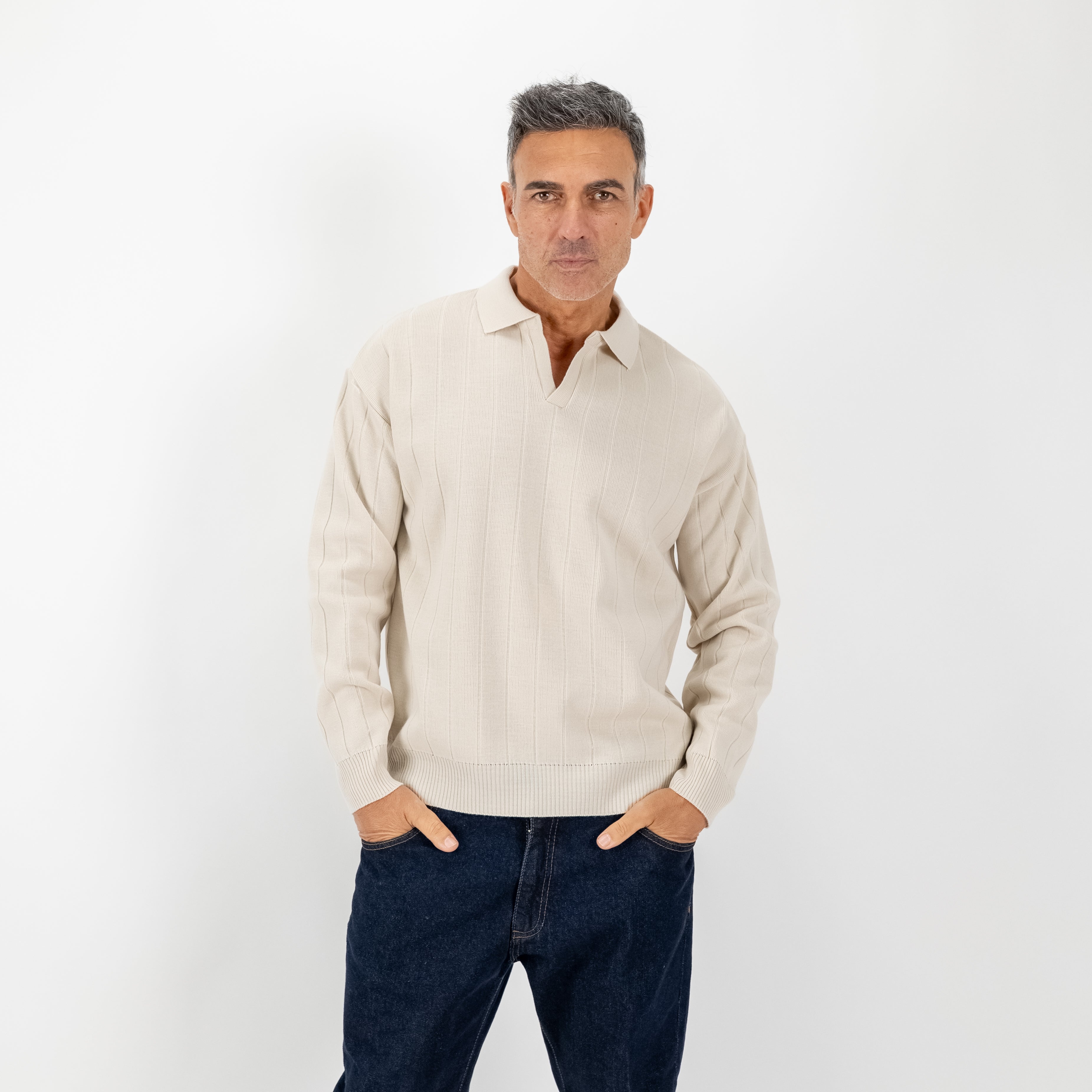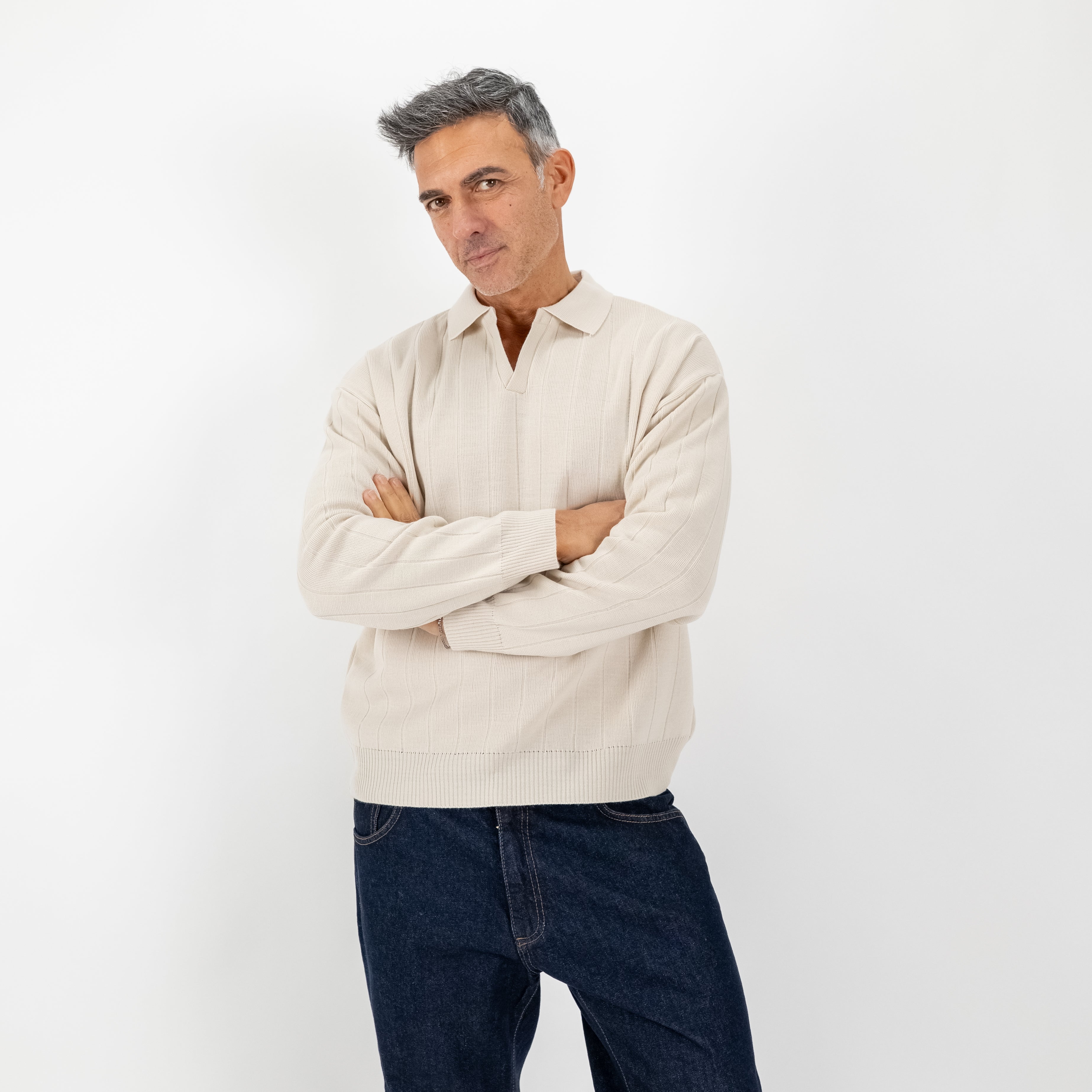 Perfetta da abbinare a pantaloni sartoriali, denim scuro o cappotti strutturati: una polo pensata per chi cerca stile e distinzione in ogni dettaglio.