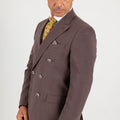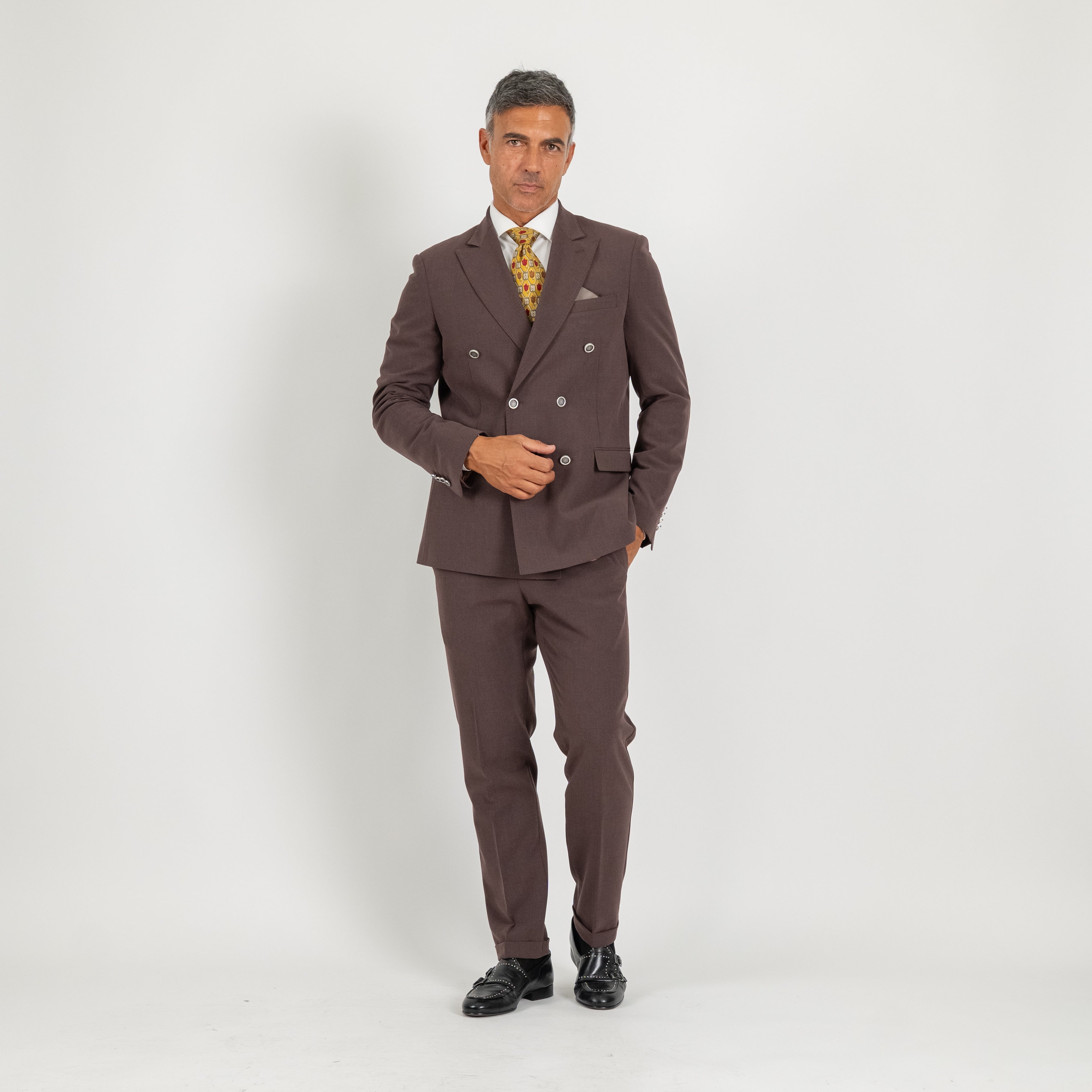 Stile deciso e cura sartoriale definiscono questo abito doppiopetto da uomo, pensato per chi desidera distinguersi con eleganza e personalità. La giacca doppiopetto, impreziosita da impunture a vista e bottoni in finitura argento, presenta un taglio strutturato e moderno. In coordinato, una pochette da taschino inclusa aggiunge un dettaglio raffinato, completando il look con un tocco di classe.