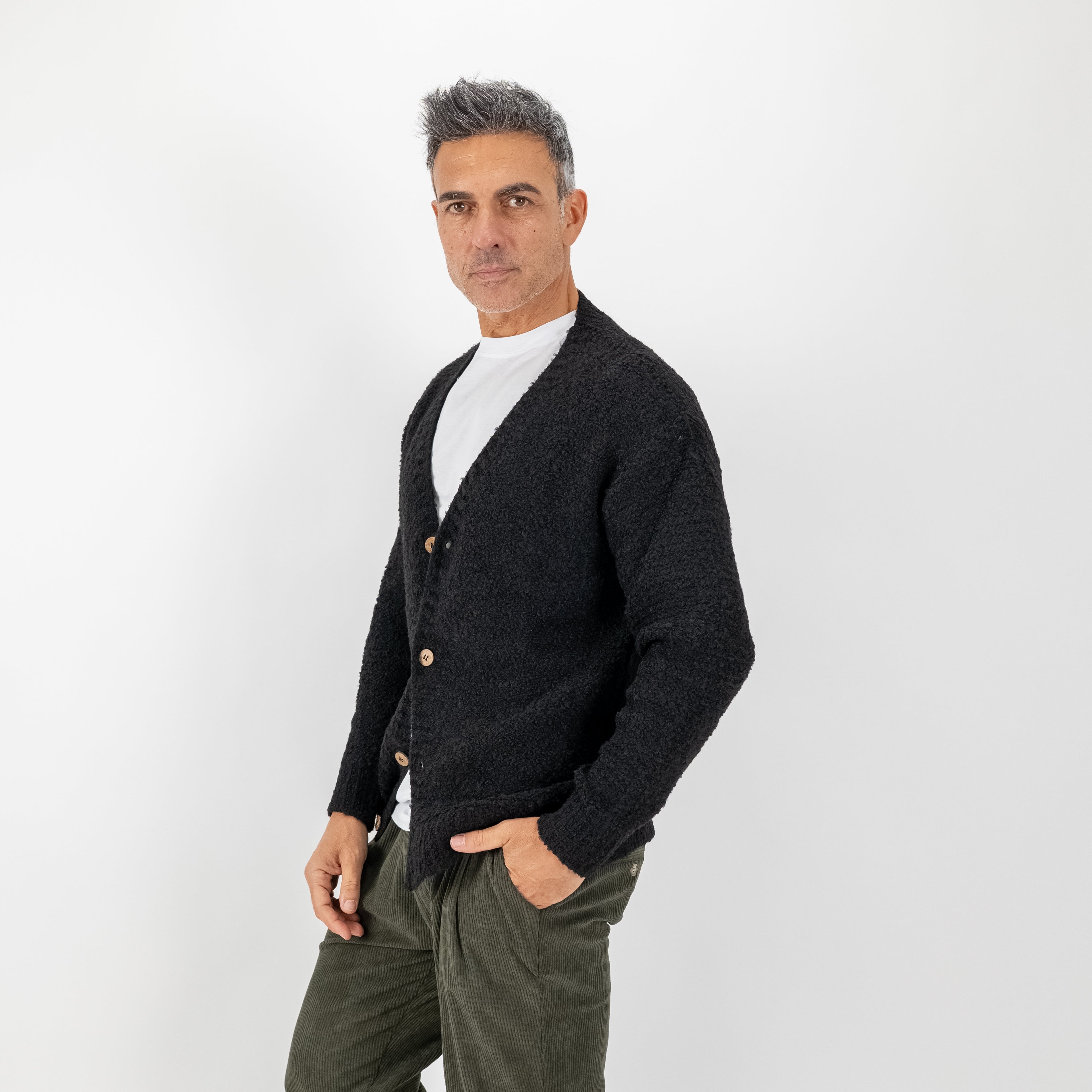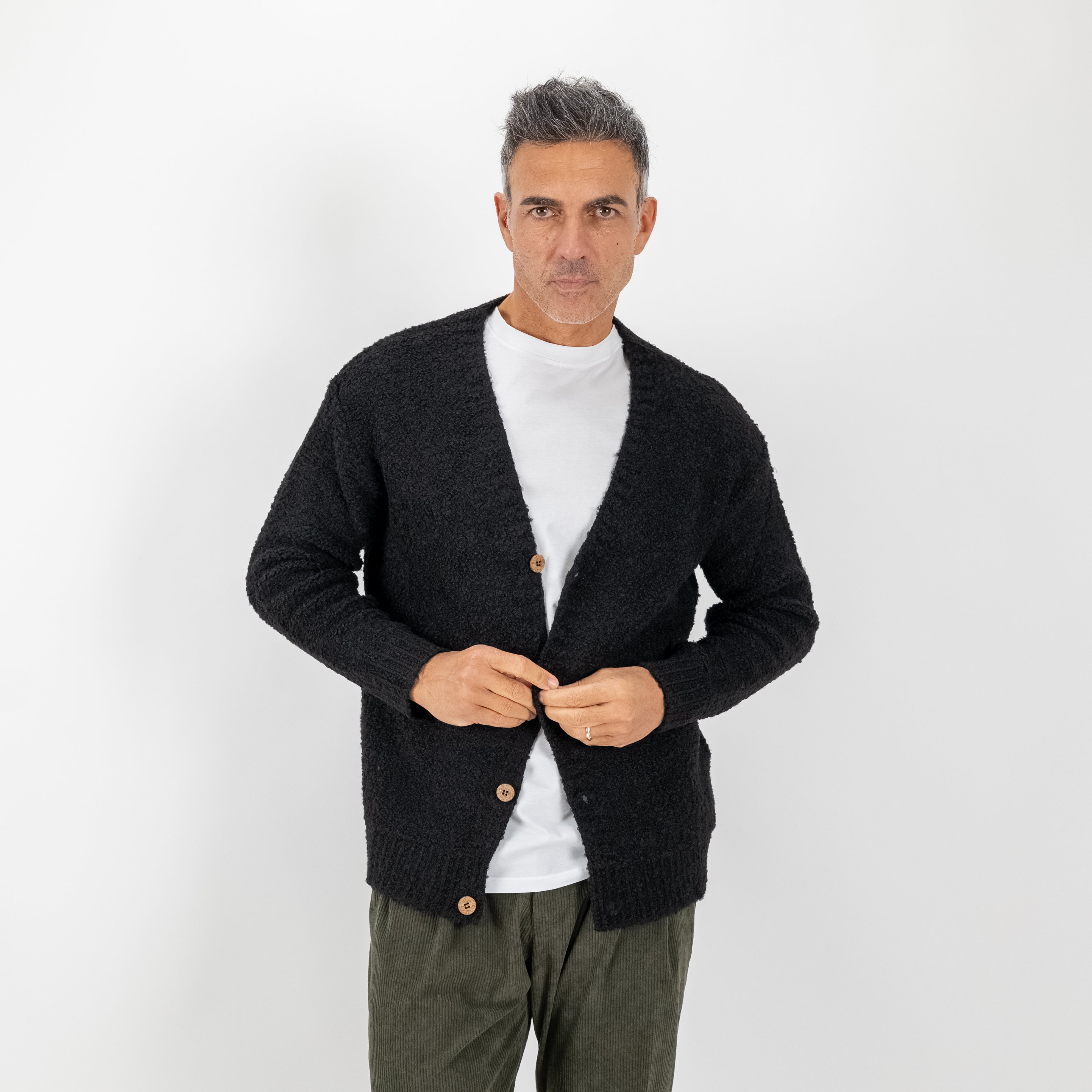 La costruzione minimal permette al cardigan di adattarsi con classe a qualsiasi look, dal più casual al più ricercato, diventando un vero alleato di stile nelle giornate più fresche.