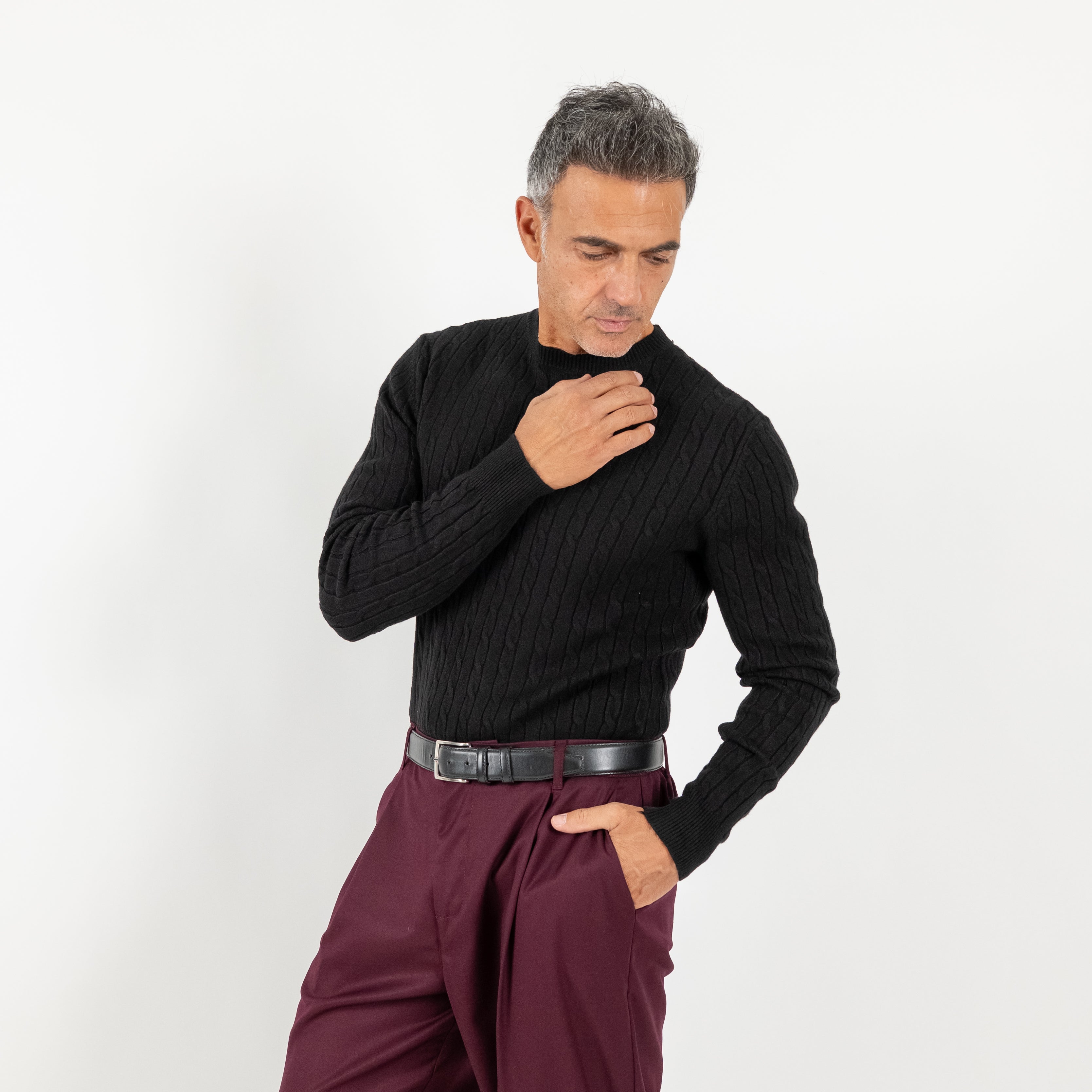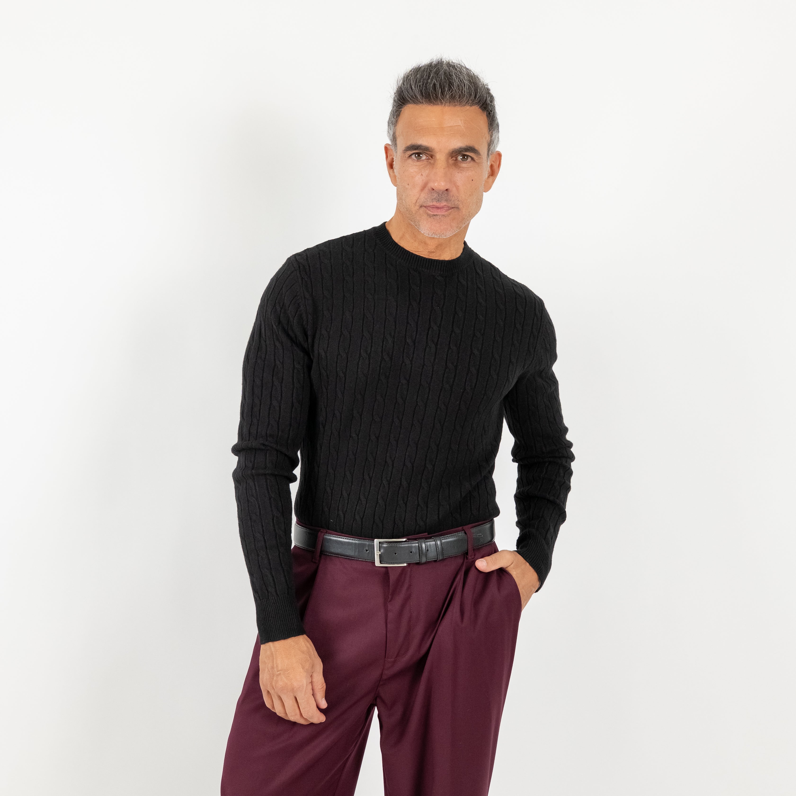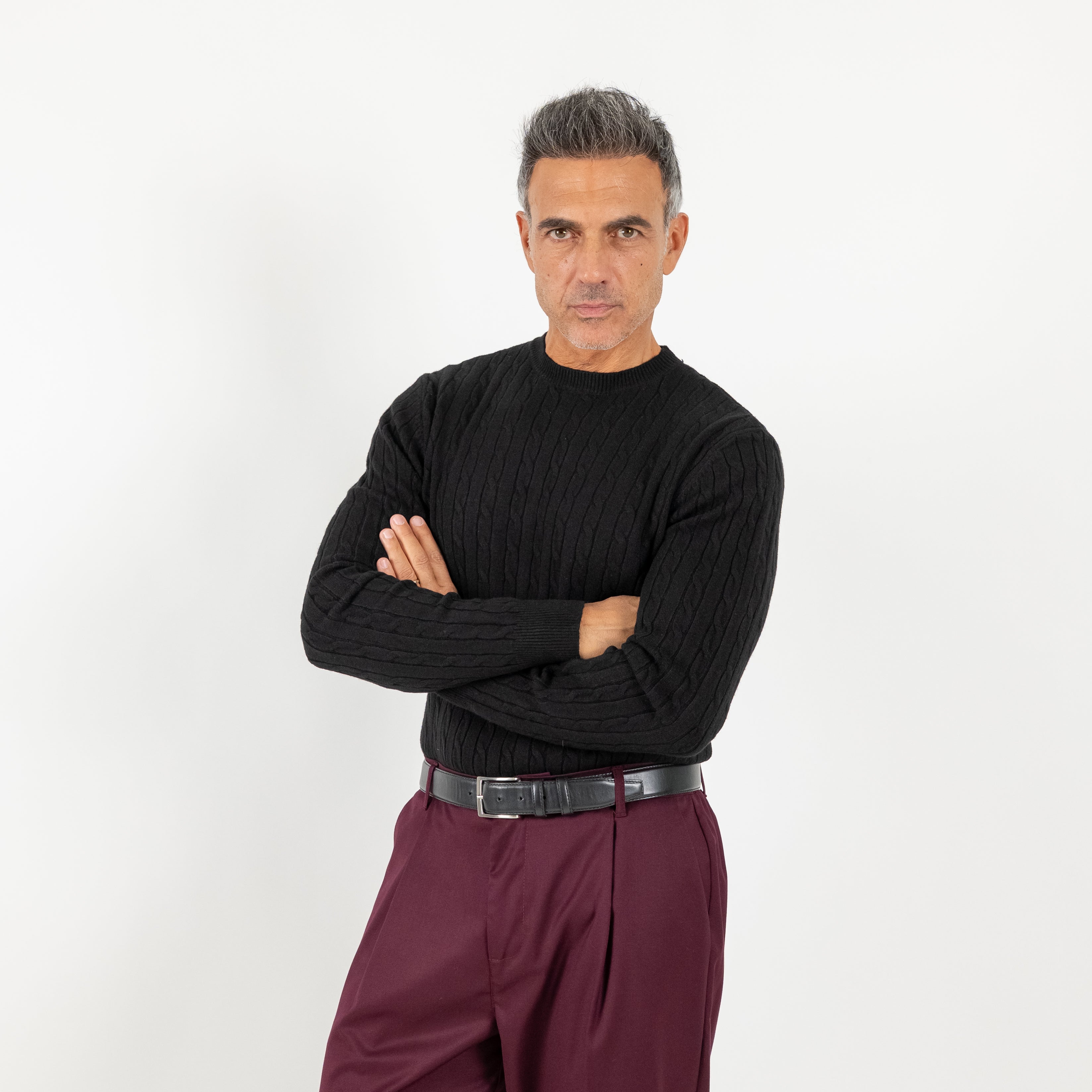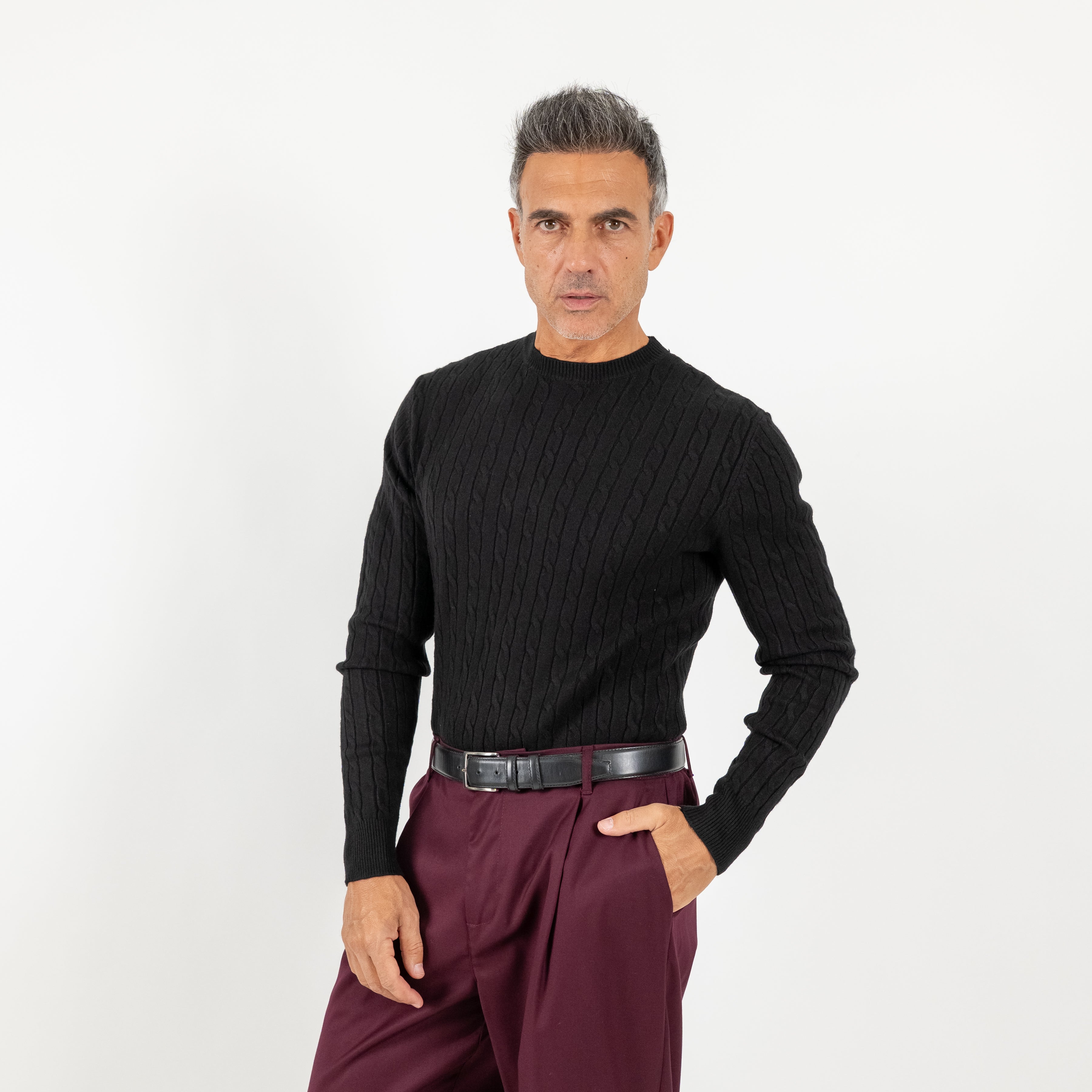 Un classico intramontabile che non passa mai di moda. Questa maglia presenta un girocollo pulito ed essenziale e una trama a treccia che aggiunge profondità e carattere al capo. Le maniche lunghe garantiscono comfort e calore, rendendola perfetta per le stagioni più fresche. Versatile e raffinata, si abbina facilmente sia a look casual con jeans che a outfit più eleganti con gonne o pantaloni sartoriali.