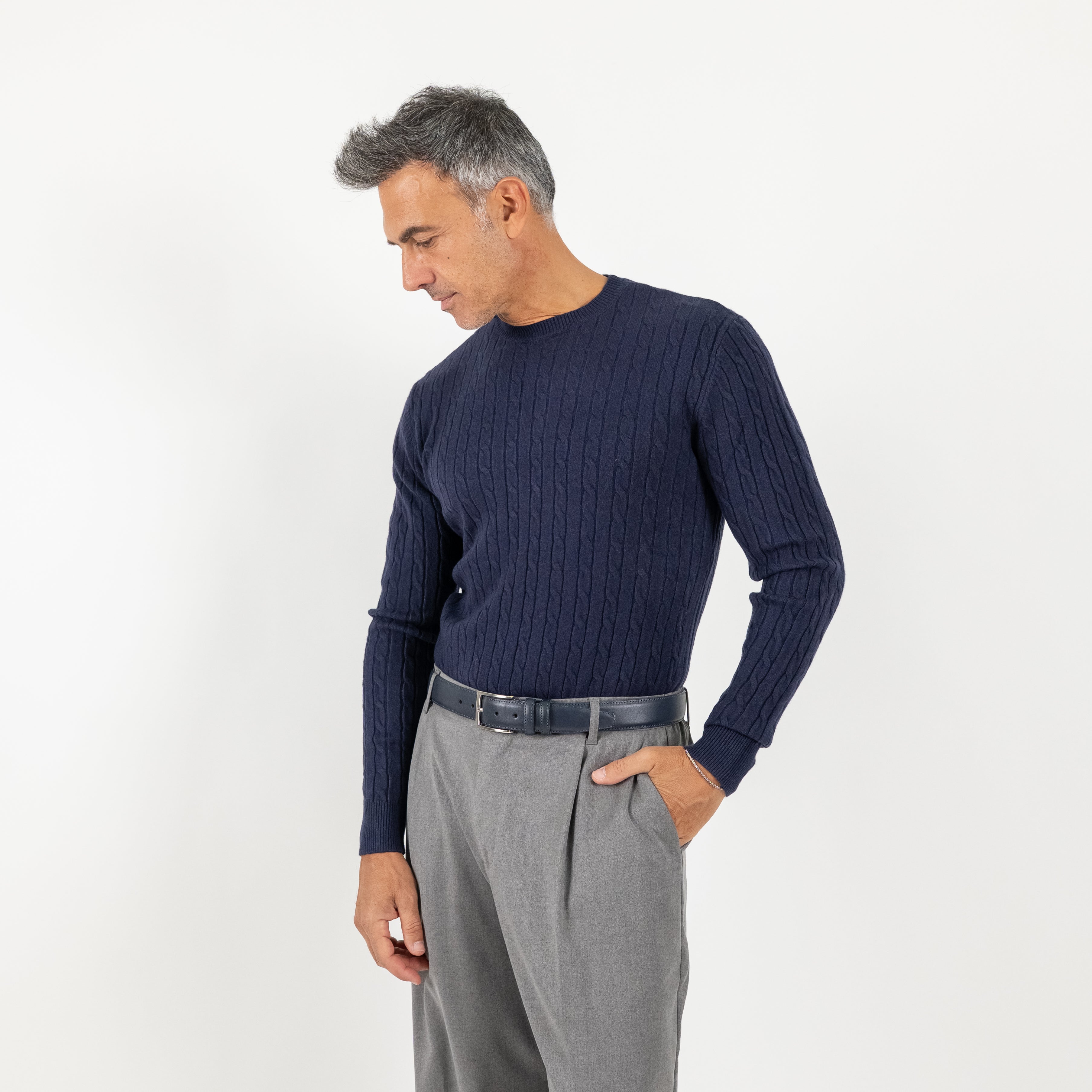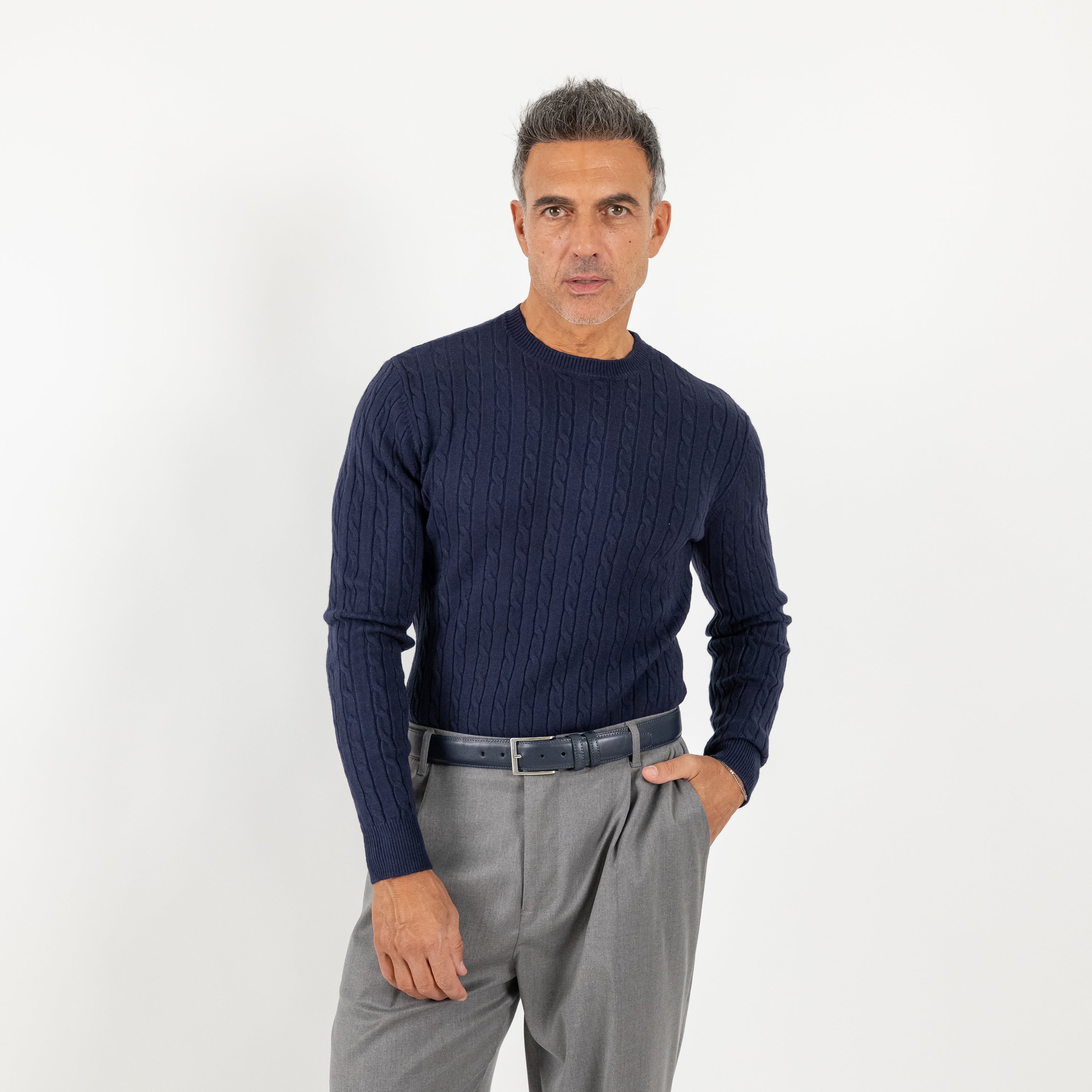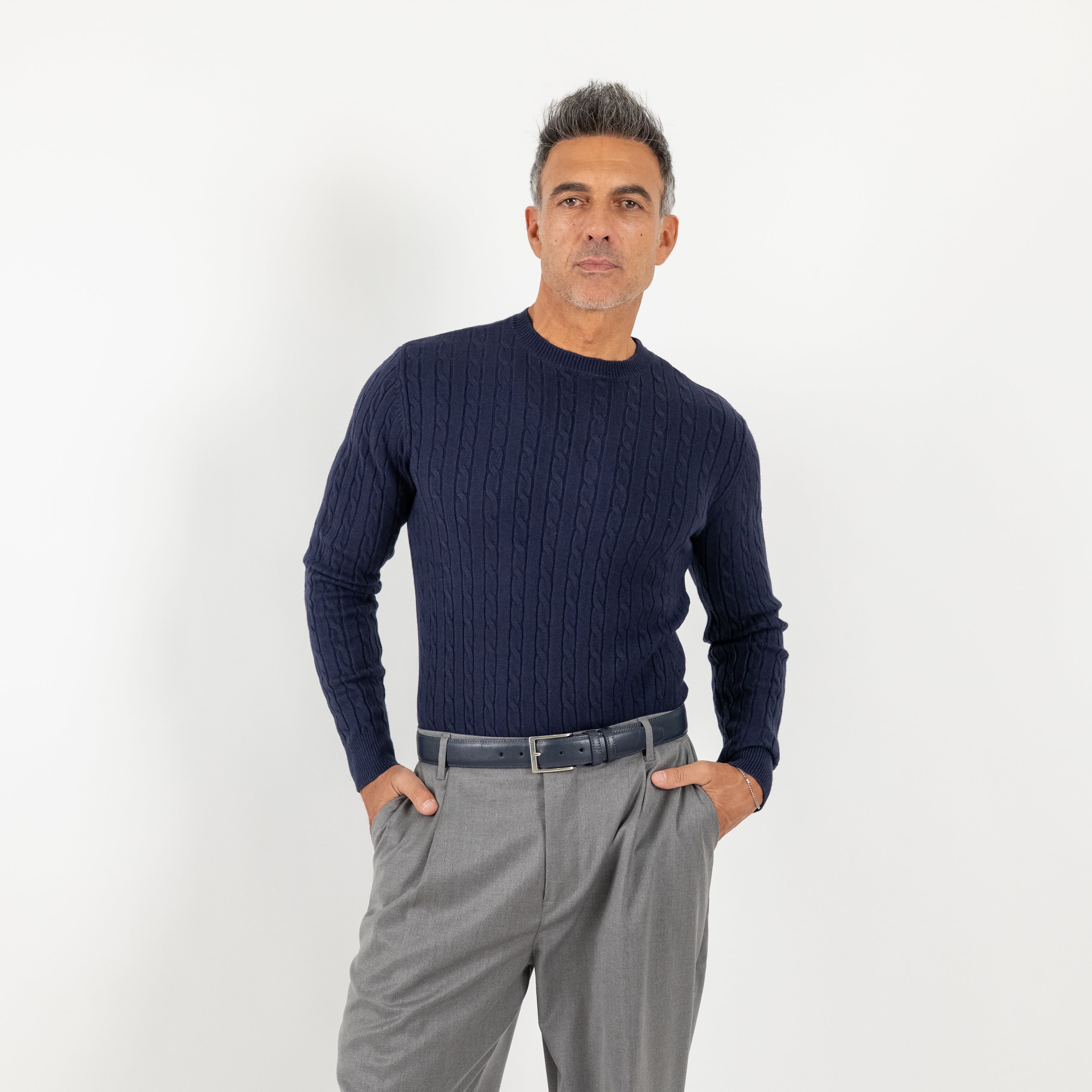 Un classico intramontabile che non passa mai di moda. Questa maglia presenta un girocollo pulito ed essenziale e una trama a treccia che aggiunge profondità e carattere al capo. Le maniche lunghe garantiscono comfort e calore, rendendola perfetta per le stagioni più fresche. Versatile e raffinata, si abbina facilmente sia a look casual con jeans che a outfit più eleganti con gonne o pantaloni sartoriali.