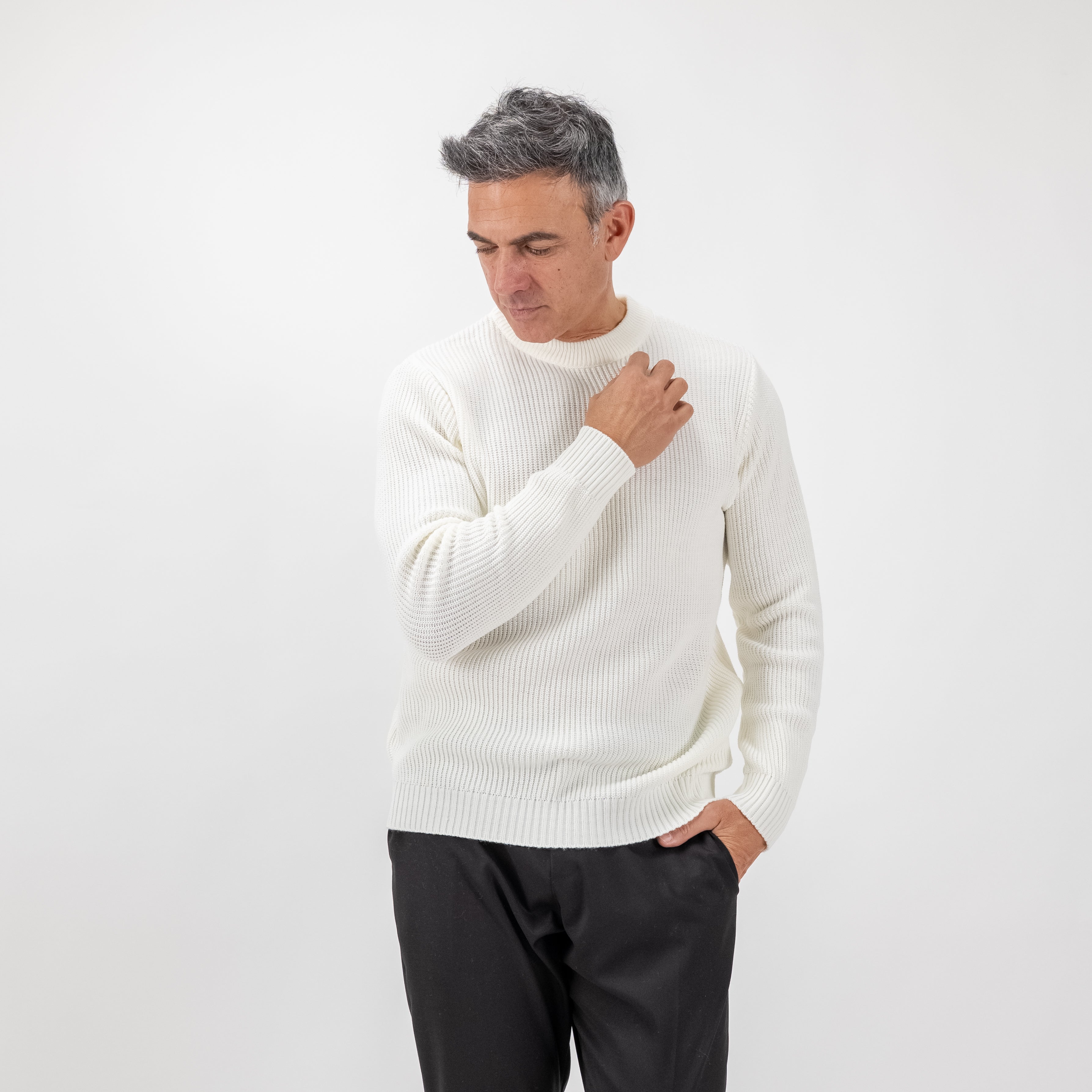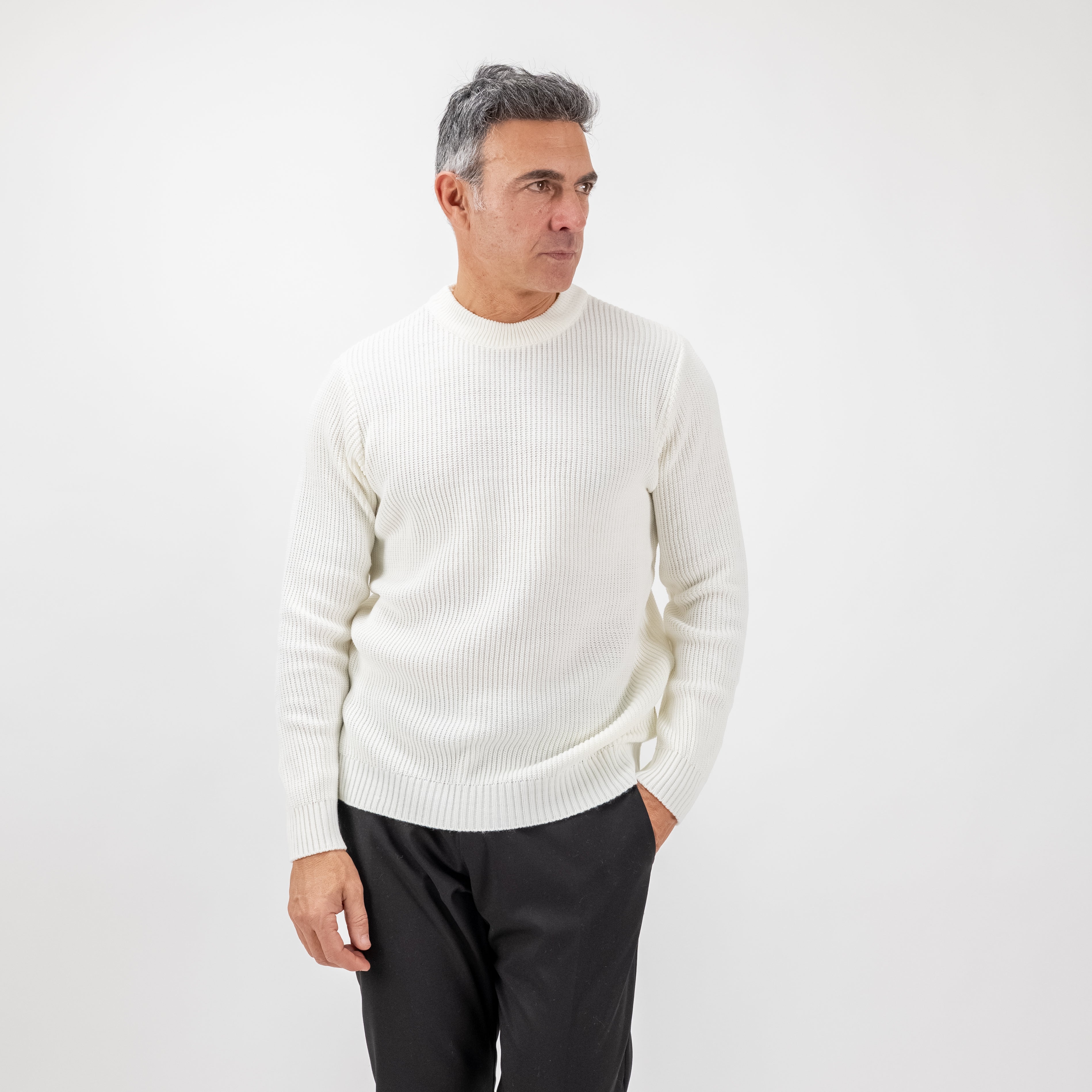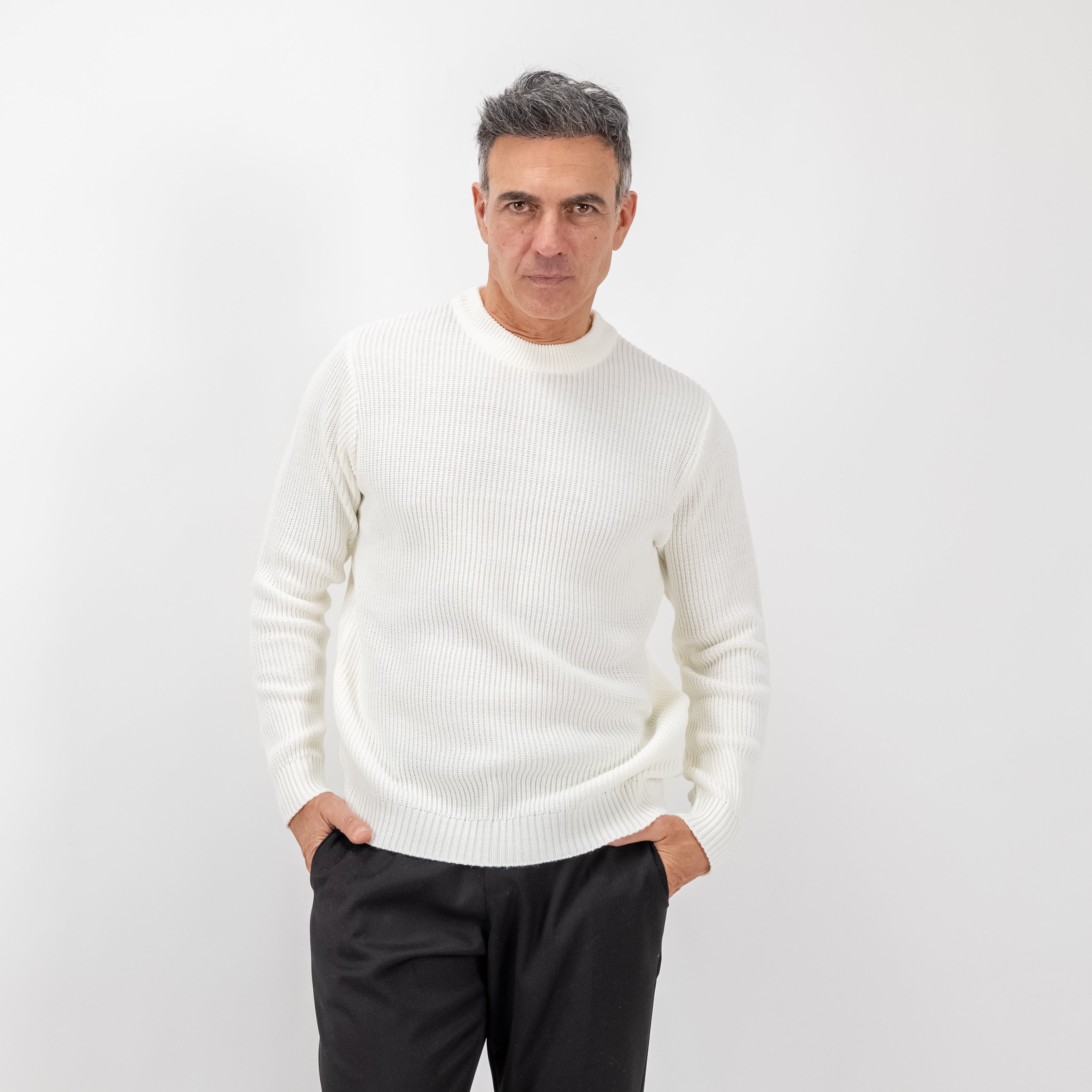 Maglione da uomo girocollo classico in misto lana, caratterizzato da una trama intrecciata sottile che dona profondità al capo mantenendo un’estetica sobria e raffinata. Il tessuto leggero assicura comfort e praticità, rendendolo ideale anche come strato sotto giacche o cappotti.