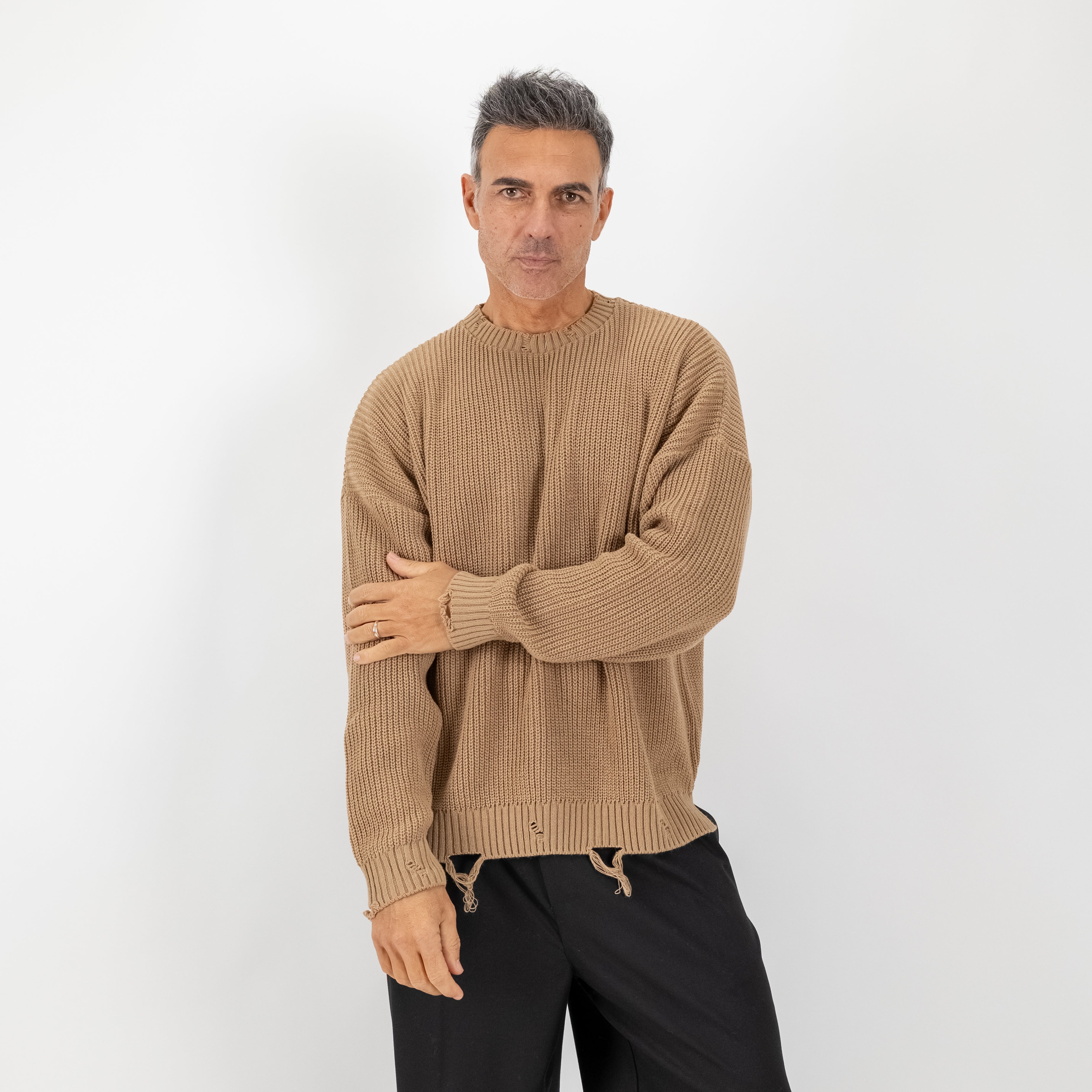 Un capo contemporaneo che unisce comfort e stile: questo maglione girocollo oversize, in taglia unica, presenta orli raw edge su maniche e fondo, per un effetto volutamente grezzo che dona carattere e personalità.