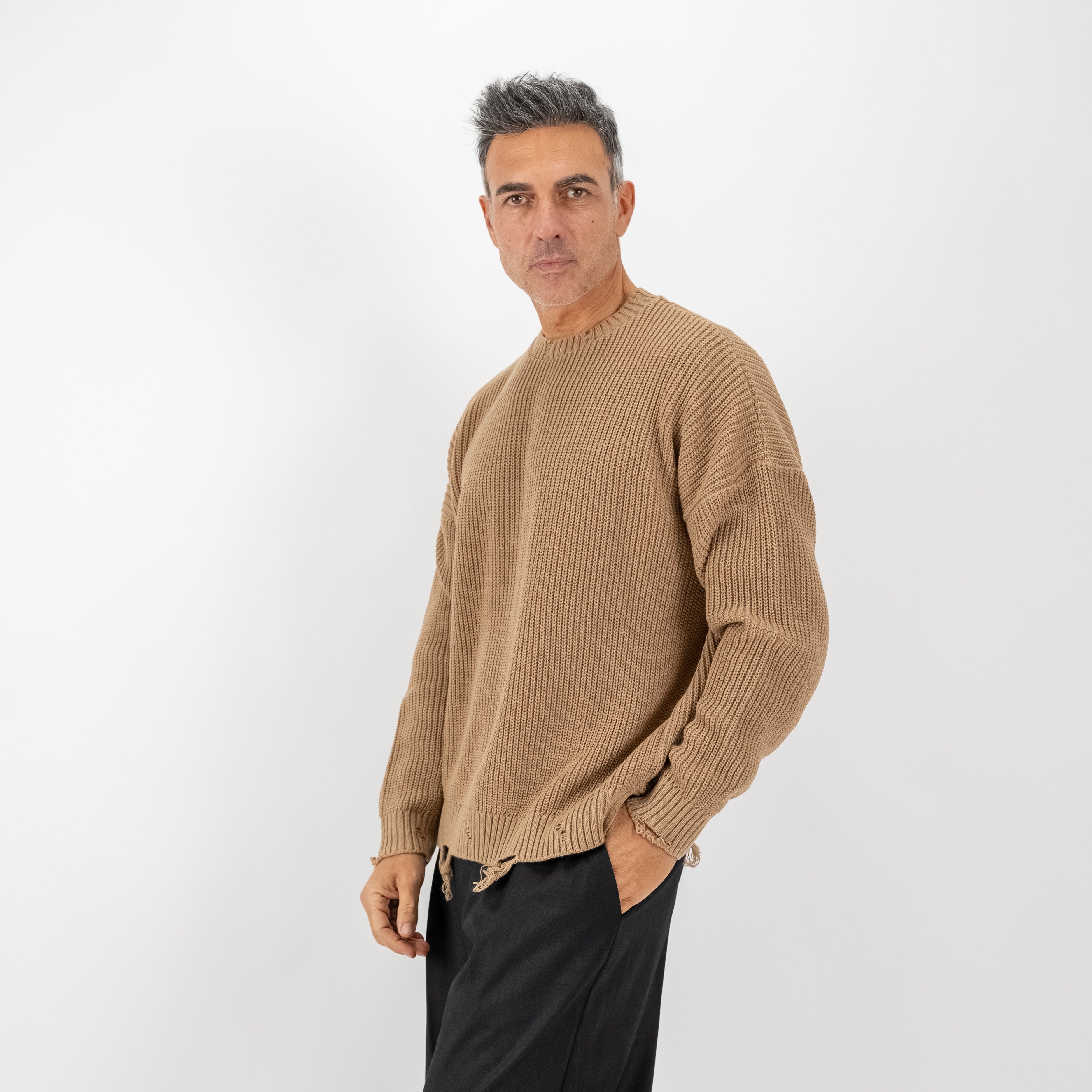 La vestibilità ampia garantisce libertà di movimento e un look rilassato, mentre il girocollo classico mantiene equilibrio e versatilità. Perfetto da abbinare a jeans, pantaloni morbidi o layering più strutturati, è un pezzo chiave per chi ama uno stile moderno, sofisticato e con dettagli distintivi.