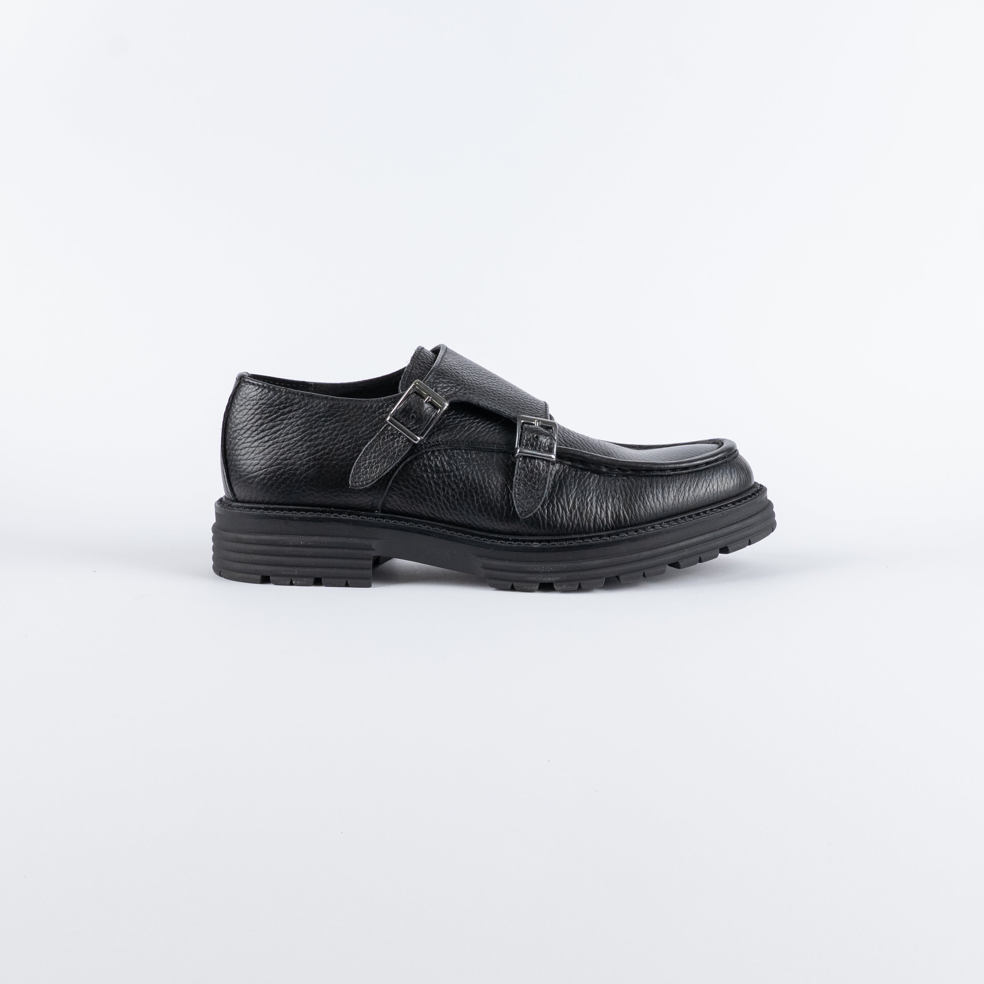 Un modello iconico rivisitato in chiave contemporanea: questo mocassino con doppia fibbia è realizzato in pelle bottolata di alta qualità, che conferisce robustezza ed eleganza al tempo stesso. La suola carrarmato in gomma assicura comfort, stabilità e un look deciso, ideale per chi cerca una calzatura che unisca stile e praticità. Perfetto per outfit formali rivisitati in chiave moderna o per aggiungere un tocco sofisticato al casual quotidiano.