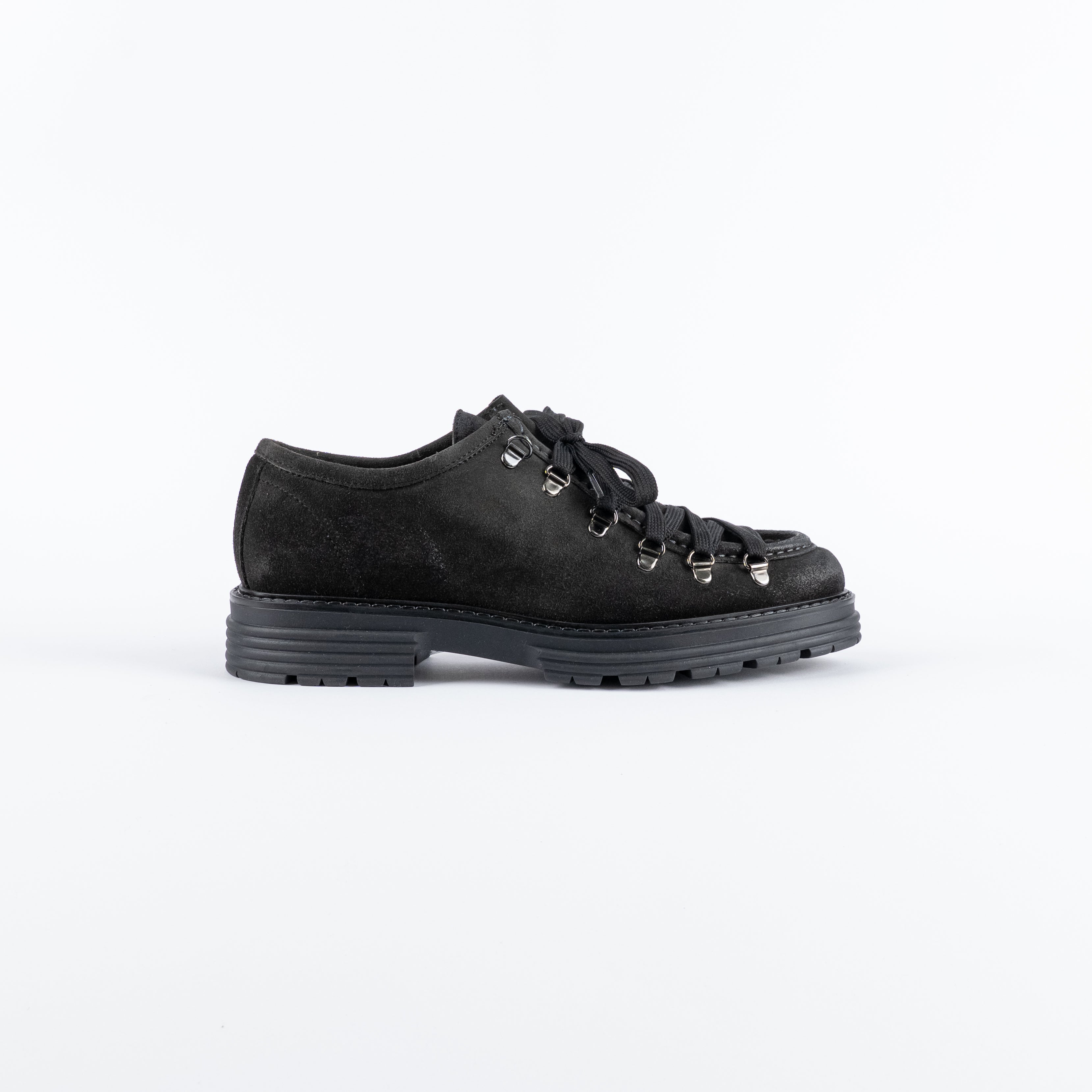 Mocassino ingegnere stringato con ganci in camoscio - Nero