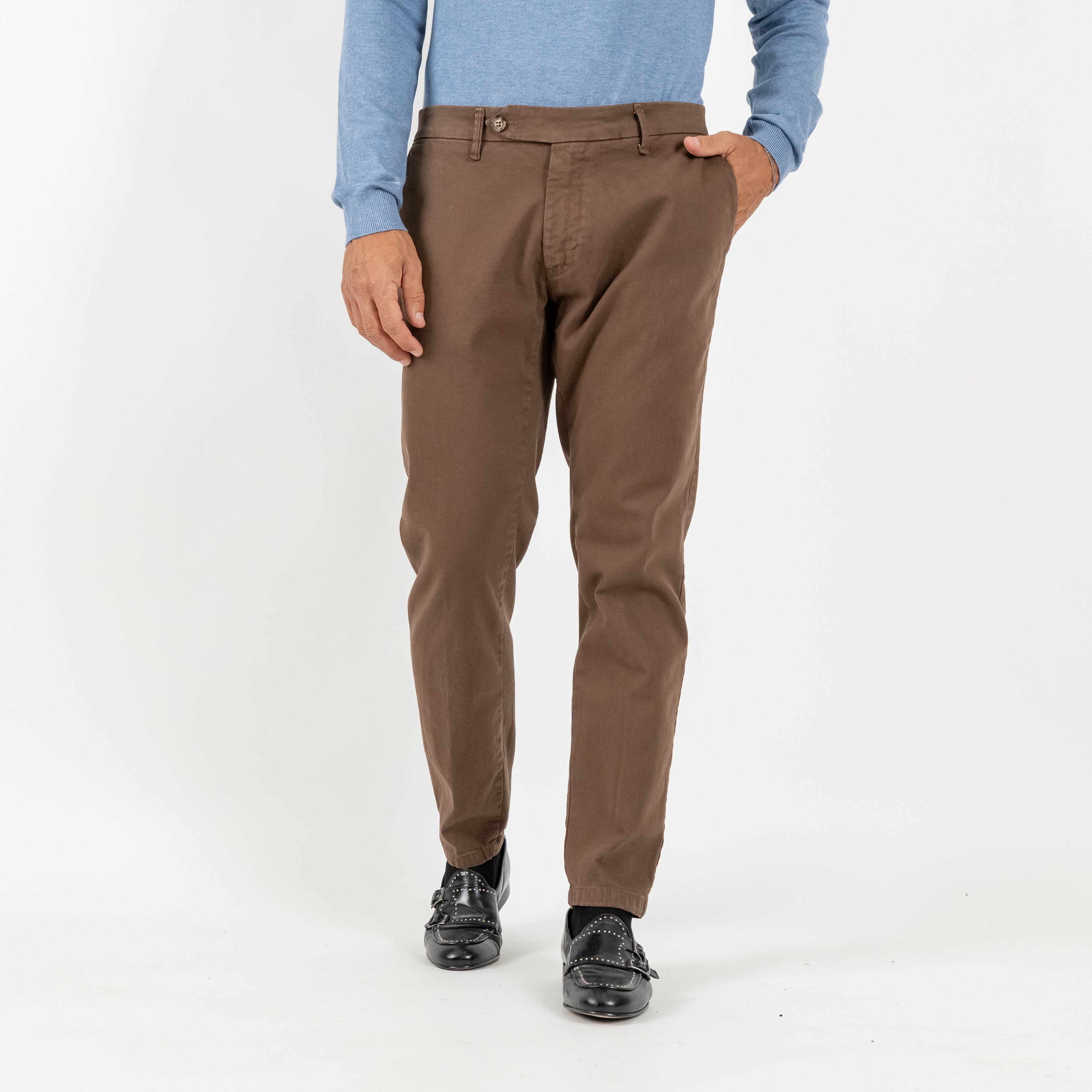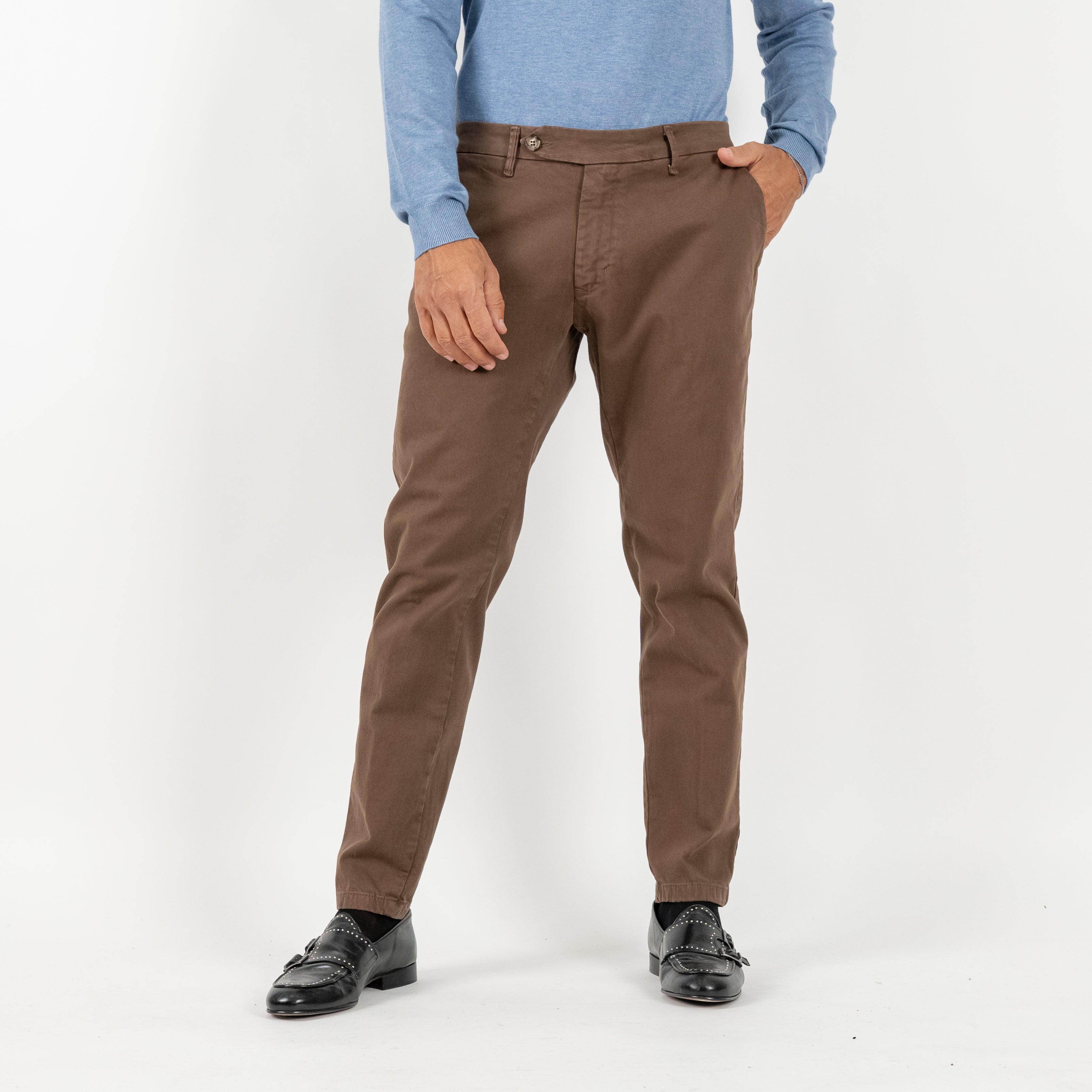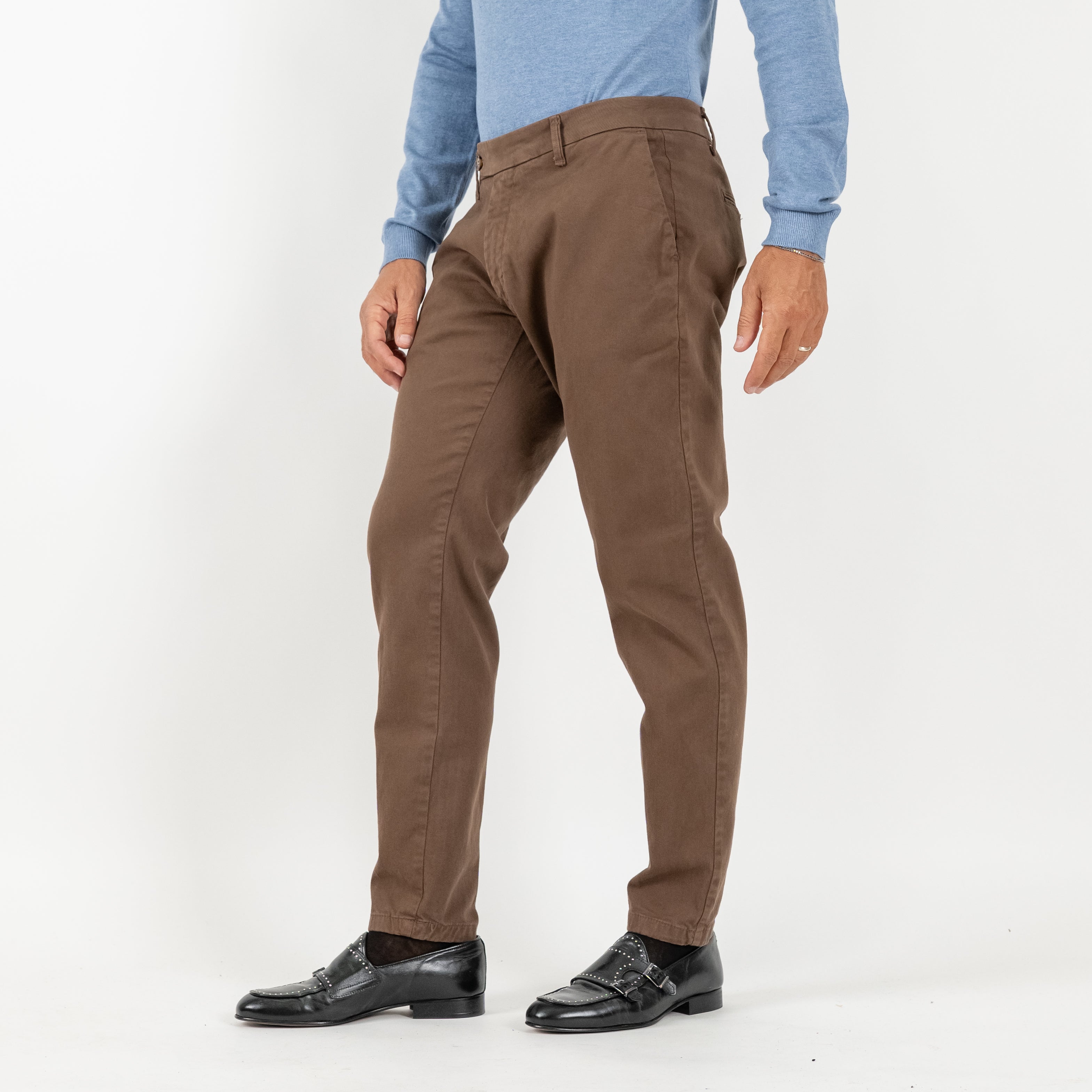 Pantalone classico in gabardina di cotone dal taglio slim fit, pensato per chi cerca eleganza senza rinunciare al comfort. La chiusura laterale, discreta e raffinata, aggiunge un tocco sartoriale al design pulito, mentre la linea slim valorizza la silhouette con modernità. Perfetto per completare outfit formali o look smart-casual dal carattere contemporaneo.