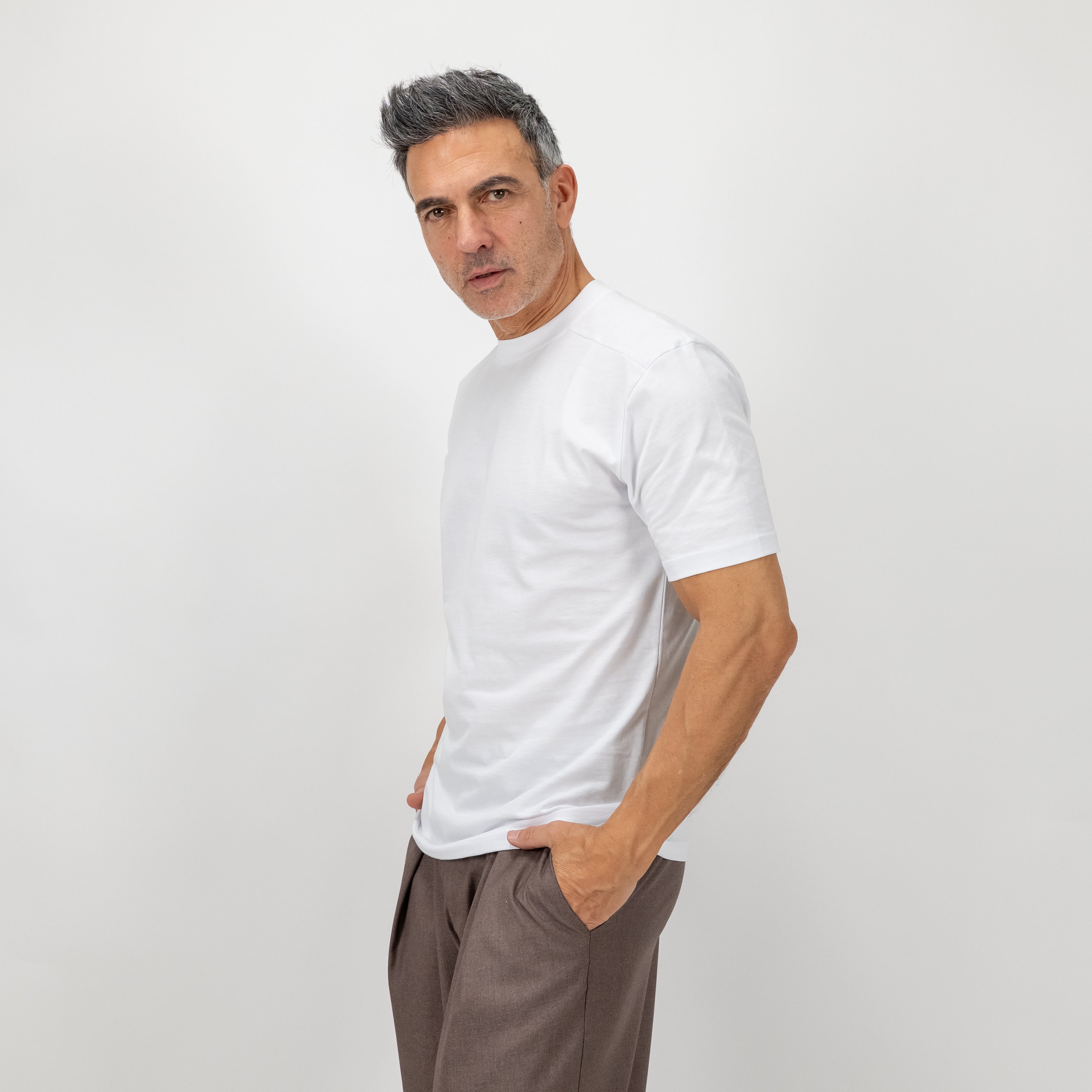 T-shirt da uomo in cotone, pensata per unire comfort e stile essenziale. Il colletto doppio aggiunge un dettaglio distintivo e moderno, valorizzando il design pulito del capo. La vestibilità comoda la rende ideale per l’uso quotidiano, perfetta da abbinare sia a look casual che più curati.